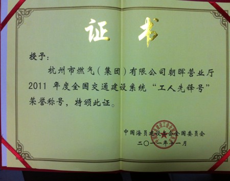11月,集团公司朝晖营业厅荣获中国海员建设工会委员会2011年度全国交通建设系统“工人先锋号”的荣誉称号,这正是集团公司扎实开展创建活动,努力提升服务水平的生动体现。