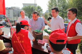 同日,市城投集团总经理章维明、团市委副书记赖明诚,燃气集团总经理俞建国到现场慰问志愿者。章维明总经理对志愿工作给与高度肯定,指出在团工作中开展志愿活动是很好一个平台,要积极发动青年团员参与,坚持长效机制,结合群教工作,开展实实在在的志愿服务工作,为社区居民提供服务。