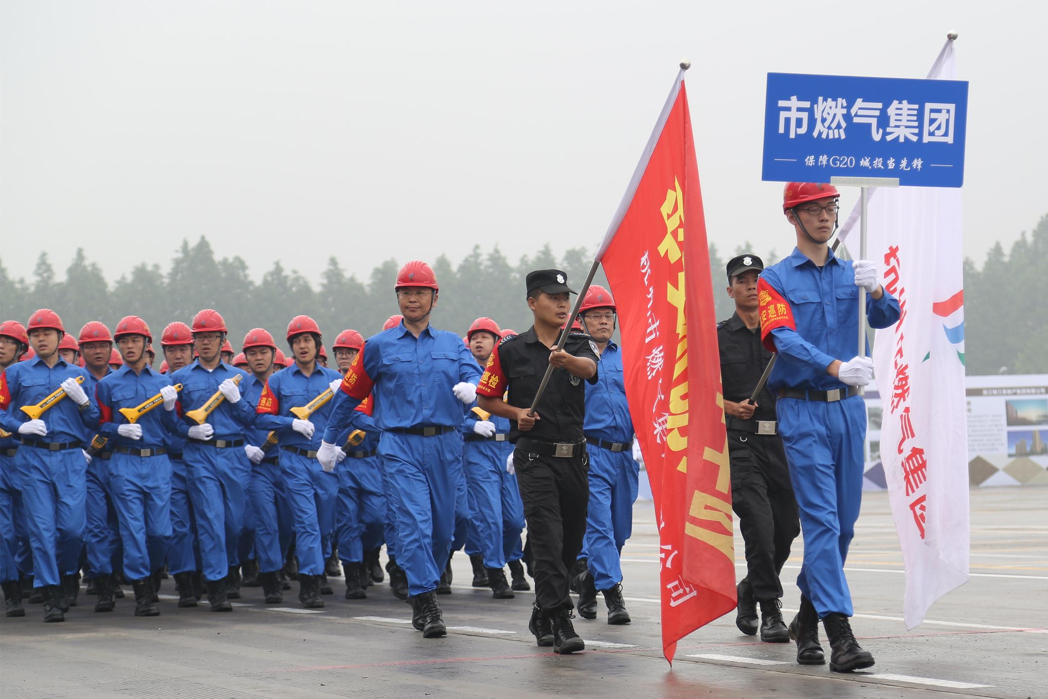 组织41名演习、80名队列人员及5辆应急抢险车辆方阵参加了杭州市城投集团国际峰会保障百日誓师暨平安巡防支队成立大会。