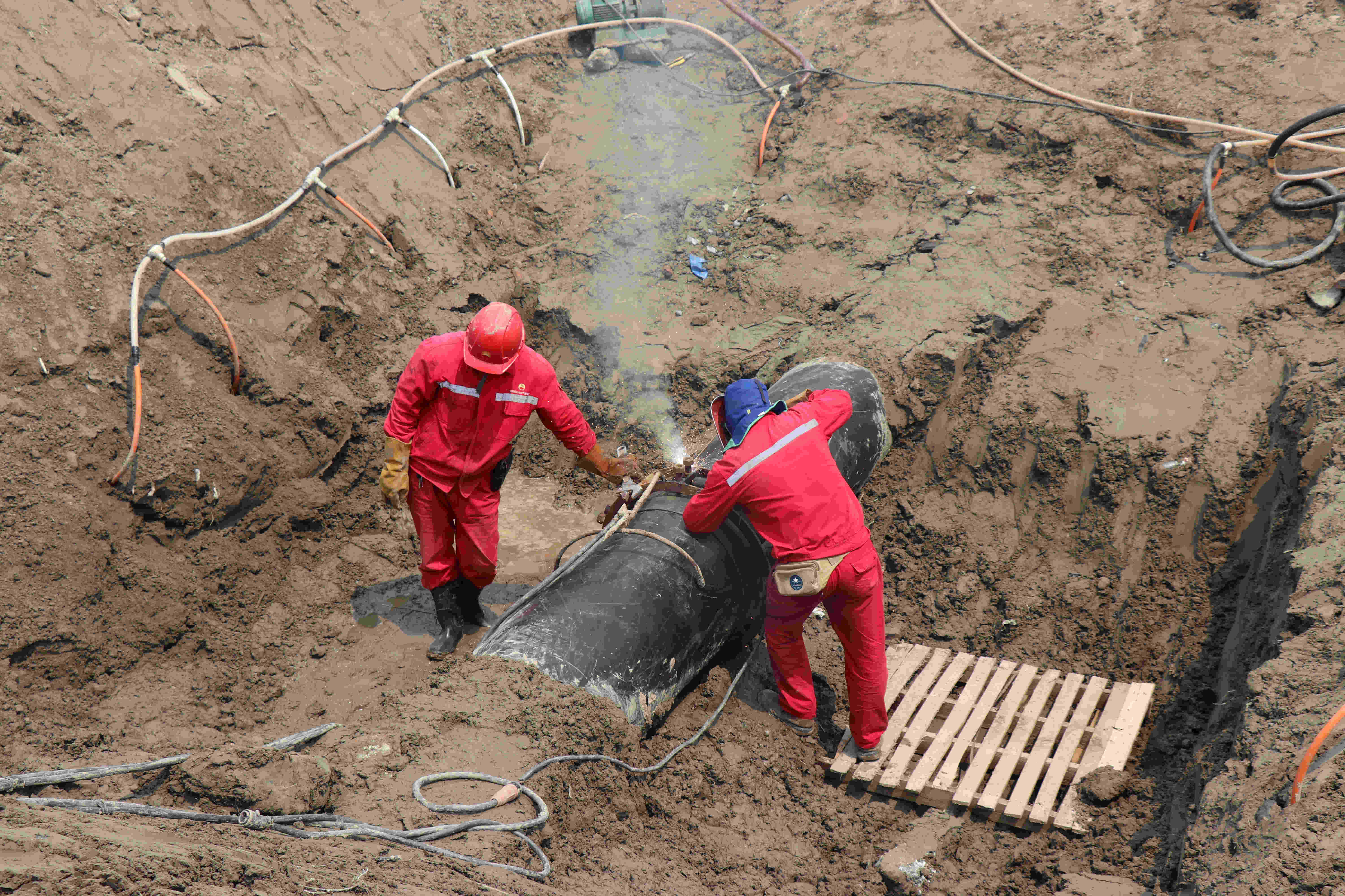 图2:过江高压管道施工现场。