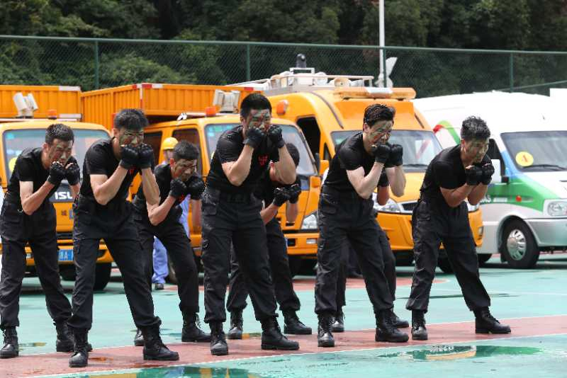 汇报演练先由第11期优秀学员、先锋连队员和珺鼎教官进行汇报演练,他们的风采是汗水的结晶,嘹亮的口号喊出的是自信和刚强。他们是杭城燃气安全保障各类应急抢险中拉得出、打得响的超能战士,他们是技能高强的退役教官,汇报演练气势宏大,场面感人。