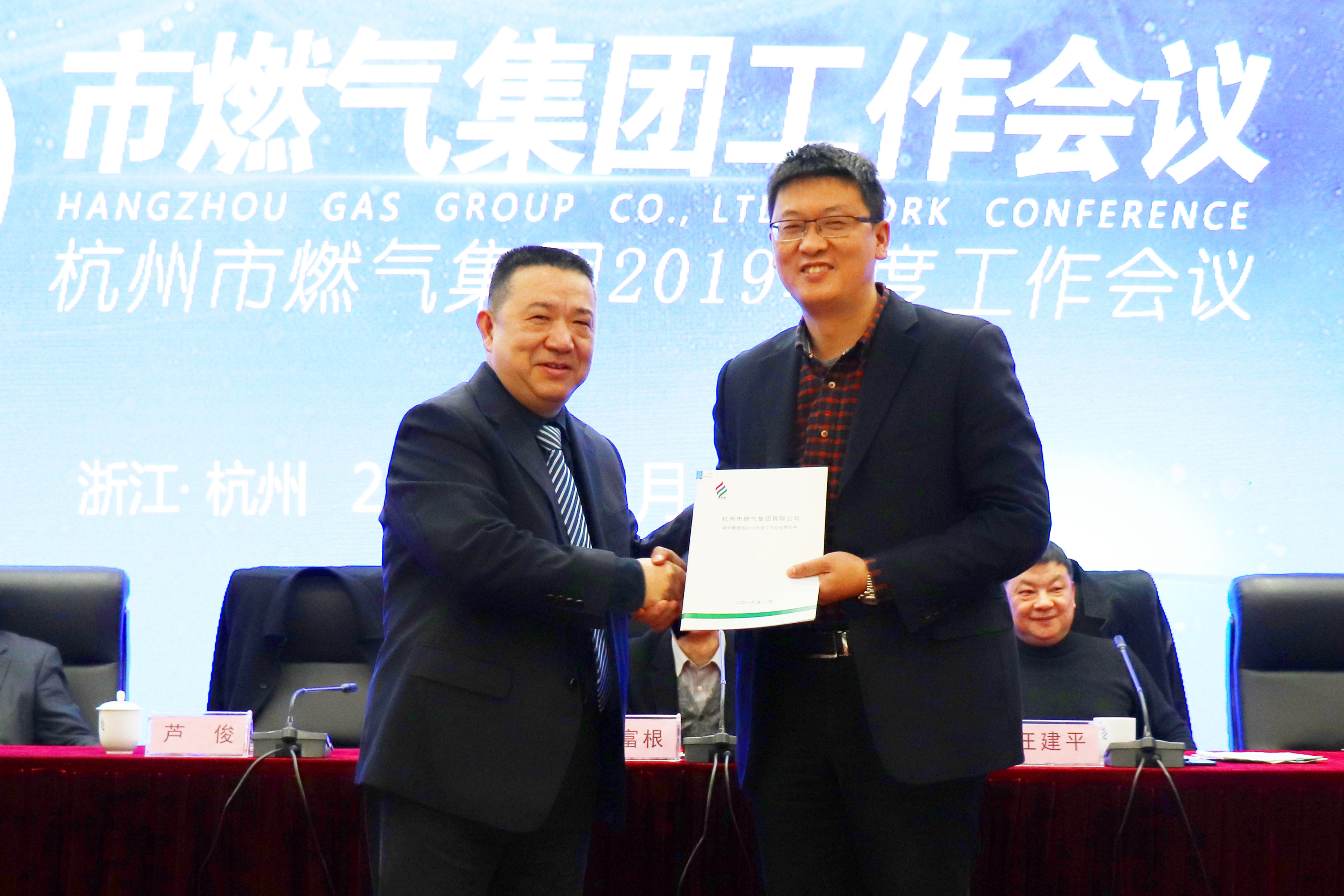 集团党委书记、董事长芦俊结合2019年工作报告,作三方面讲话:一是充分肯定2018年工作,进一步树立创新发展信心。主要指标体现了“两个二十一个七”。即气量与上年同比增长26.3个百分点,营业收入与上年同比增长22.2个百分点,总收入增长了7.9亿,为近五年最高增幅。“四个产品出新意”。杭燃供气保持高增长,用户发展超10万;杭燃服务实现跨区域发展,工程公司外埠产值达到5405万元;杭燃优家四面开花,产值达到2385.5万元;杭燃体验接待行业同仁、社会各界、中外嘉宾、省部级老干部共计5000余人。“四大建设加十一”。滨江二通道、大江东高压S6过钱塘江、天然气西进至建德安仁、地铁配套富阳供应不断次高压四大工程完工,提升了主城区尤其滨江的天然气保供能力,为亚运会保障夯基,巩固了富阳的市场格局,增强了大江东和西进的扩张力。同时,全资控股单位员工人均薪酬性收入增幅为近五年最高。“两次维权求正义”。2018年1月12日和12月22日在大江东的两次维权,1600人次零下4度的彻夜坚守,连续11天的不折不挠维权,体现出来了杭燃员工的正义之心、爱企之情和担当血性。“三代群星耀吾企”。2018年,沈卫国成了浙江最美工匠,钟奇成了集团最年轻劳模,余号德成了杭州工匠,董志明、占林峰、沈坚成了浙江建设工匠,一年中群星闪耀。“城燃信用评第一”。在国家发改委公共信用信息中心的第二次大数据信用评价中,集团获得全国28000家企业中的总排名第三,在城市燃气企业列第一位。二是保持战略定力,坚定六个坚持,扎实推进2019年改革创新发展管理工作。坚持战略定力,坚持“杭州主张”。坚持实事求是,坚持持续创新。坚持立足自我,坚持五界联动。三是正确认识自己,着力六个克服,以高度责任感和踏实作风保障创新发展管理工作落地。一要克服习惯思维路径。二要克服畏难情绪。三要克服体制障碍。四要克服形式主义。五要克服避重就轻。六要克服虎头蛇尾。