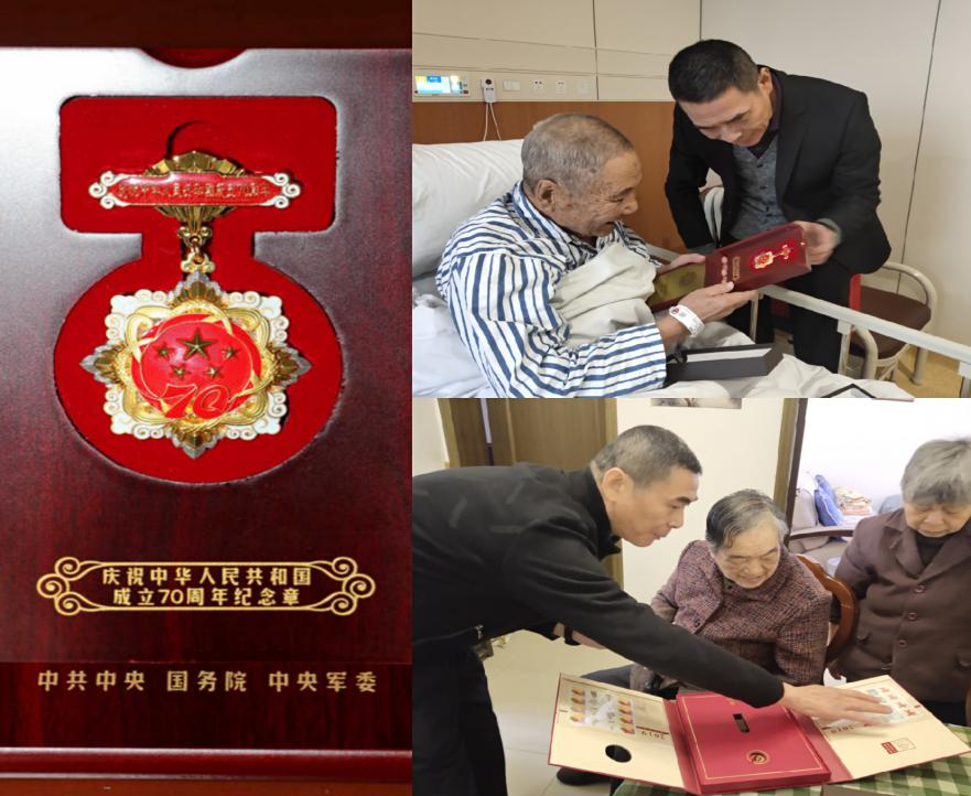 今年是新中国成立70周年,中共中央、国务院、中央军委颁发“庆祝中华人民共和国成立70周年”纪念章,旨在表彰中华人民共和国成立前参加革命工作和健在的老战士老同志。根据市国资委、市城投集团相关工作要求,近日,集团公司党委副书记、监事会主席、工会主席金富根带着各级领导的嘱托和沉甸甸的勋章,来到袁振武和童素娥两位老干部家中进行探望。