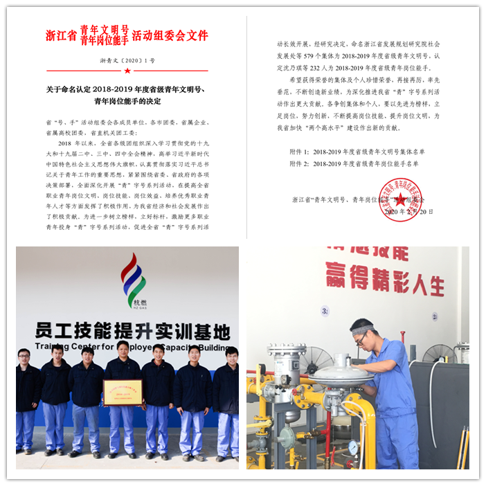近日,浙江省“青年文明号、青年岗位能手”活动组委会发文公布了《关于命名认定2018-2019年度省级青年文明号、青年岗位能手的决定》,“沈卫国技能大师工作室”成为集团第4个获得省级青年文明号的集体,杭天公司管网输配分公司丁荣荣成为集团第1位省级青年岗位能手。