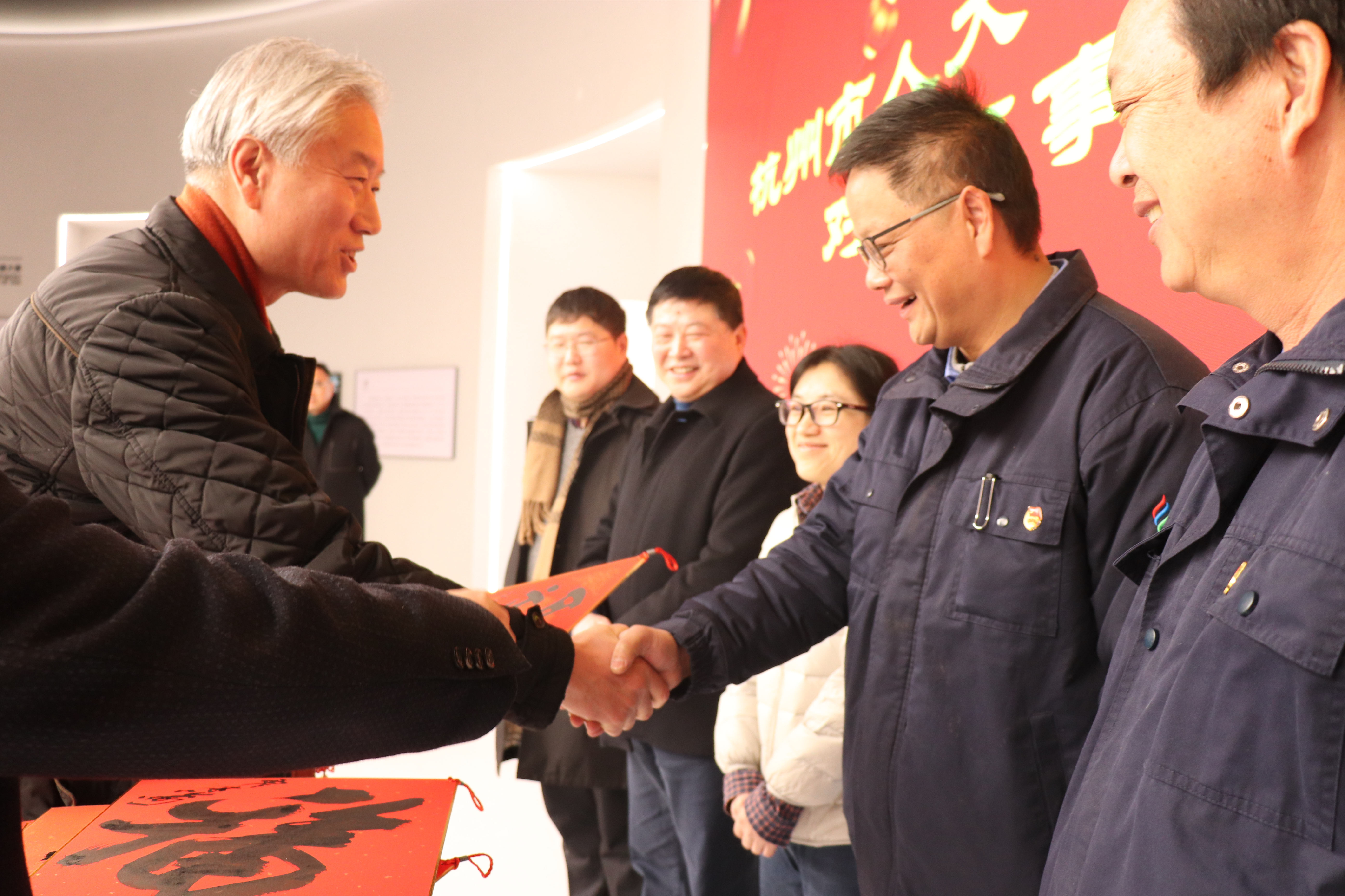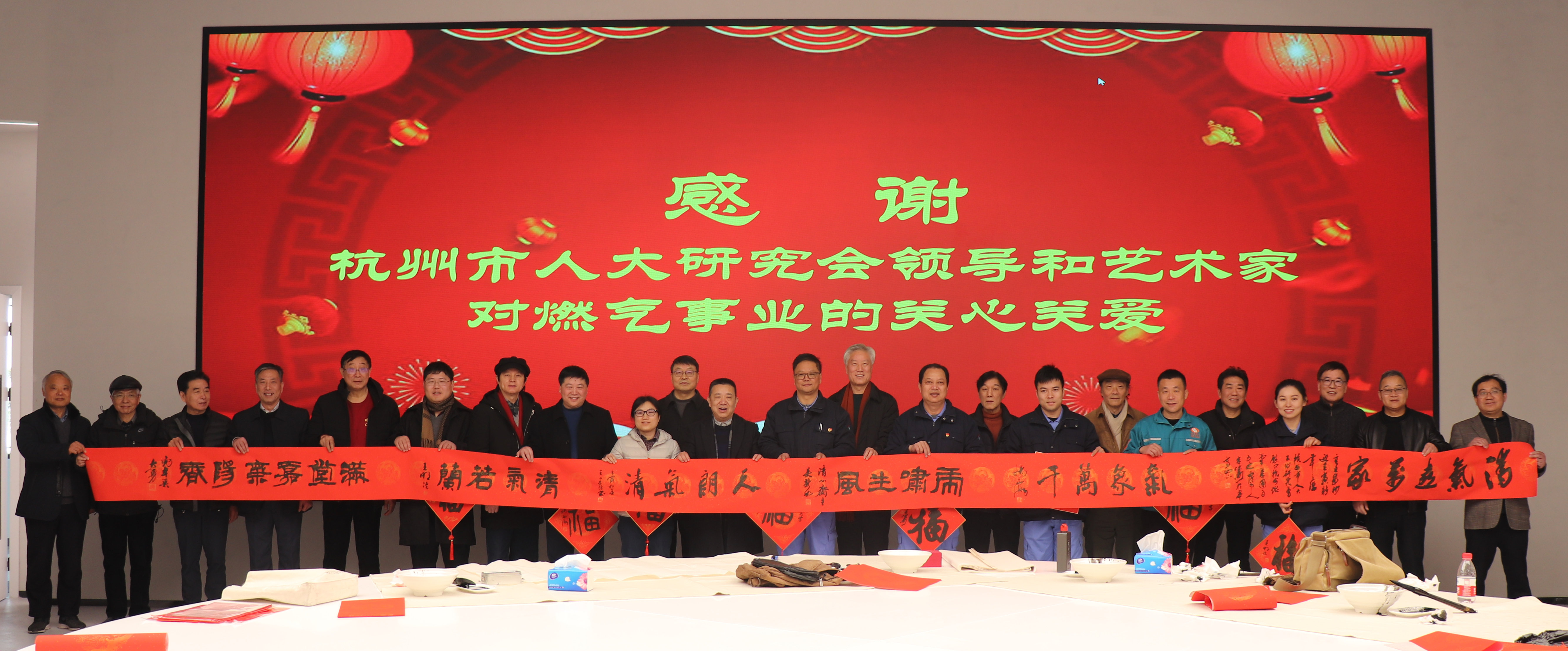 科技研发应用中心,全面了解杭州市天然气安全运行及应急保障等情况。朱金坤副主任时任杭州市公用事业局领导时推动见证了1995年七堡百江灌装厂的建设和启用。因此,满怀深情地对杭燃百江领导班子同志说:“希望你们承前启后,为城为民,再接再励,也衷心祝愿杭燃全体员工新年越来越好!”朱金坤副主任及艺术家写“福”送福,为全体杭燃员工送上了新年最美好的祝福!