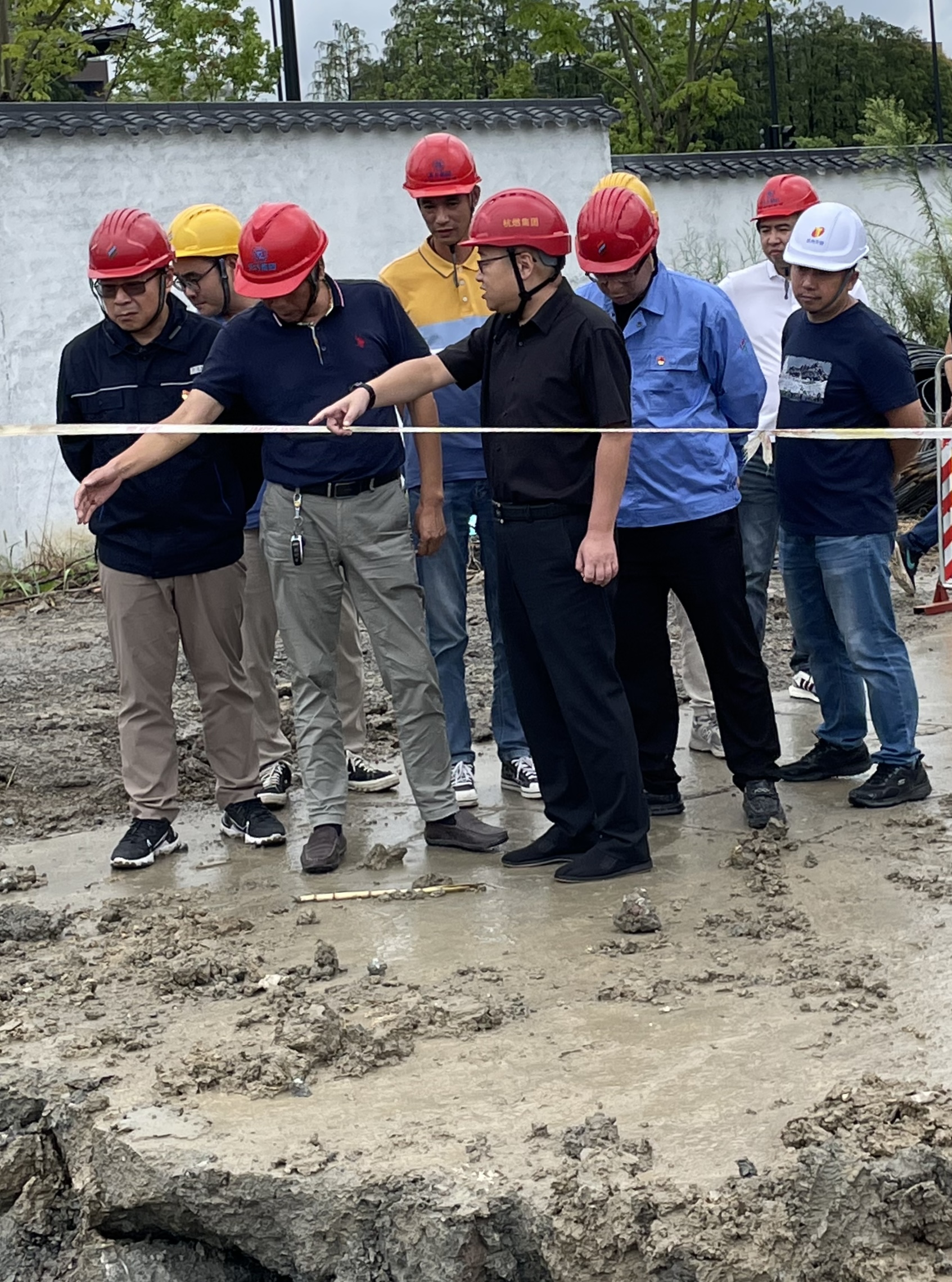 俞总对下一步施工做出工作要求,一是要精心组织,紧密配合,做好安全文明施工,力争在亚运会开始前完成除深基坑外全线主体管道施工;二是在后续开展深基坑施工过程中,施工单位要按要求严格做好安全保护措施,并强调“安全施工和施工进度”要两手都要抓、两手都要硬。
