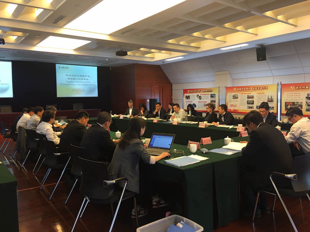 4月26日,杭天公司召开四届二次董事会。杭燃股东方芦俊、王东、朱琴君,壳牌股东方金珂、港华股东方纪伟毅出席会议。