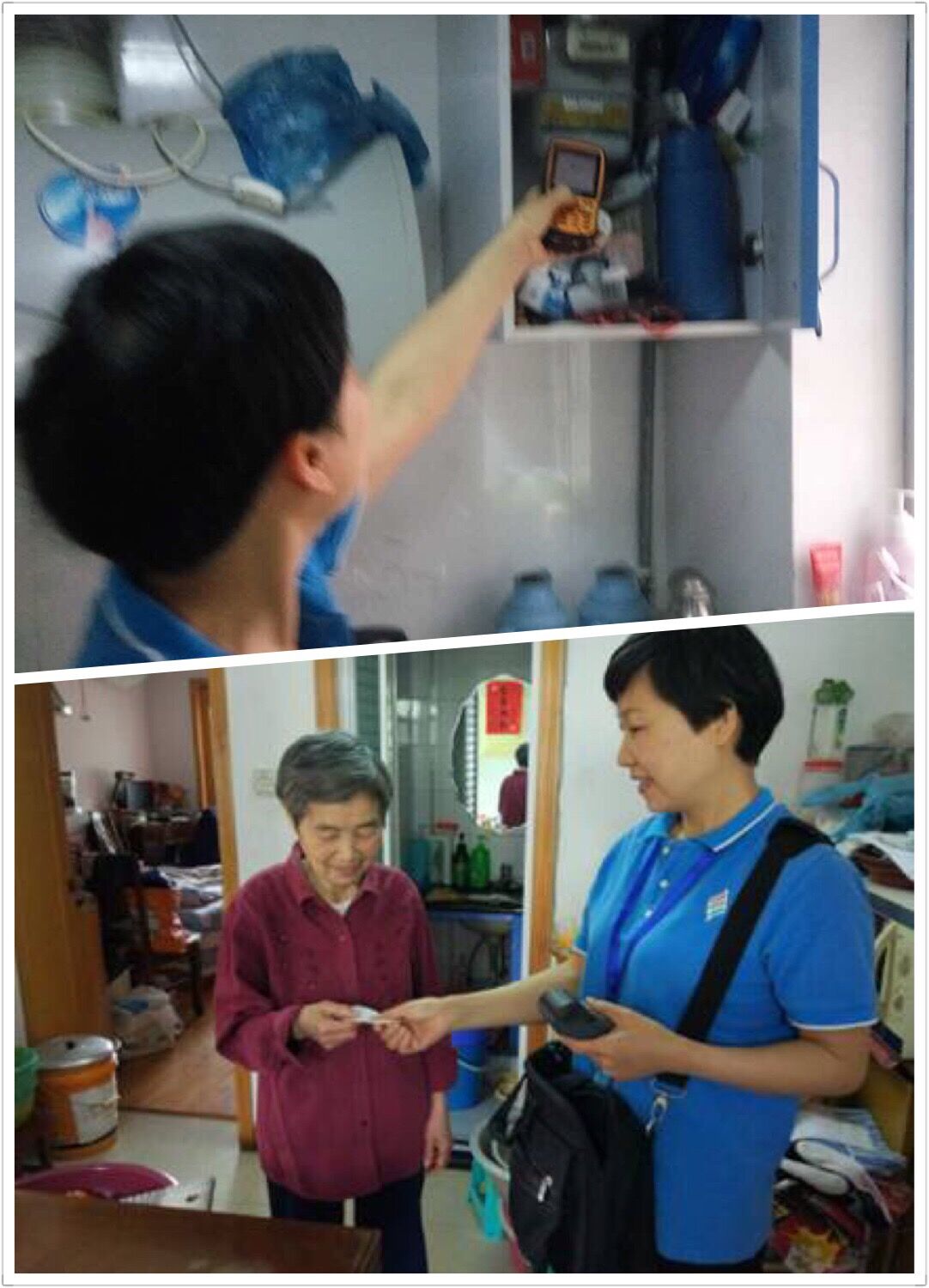 杭天公司非全日制抄检员王宏梅每天一早整理好抄表仪、检漏仪、微型抄表打印机等抄检所需物品,戴好工作证、背上工作包,礼貌地敲开用户家门,获得户主同意后,穿上鞋套走进厨房,使用掌上抄表仪对燃气表上的条形码进行扫描,输入燃气表上的读数,打印燃气缴费账单交到用户手中,请用户核对并提醒用户缴费…… 从一楼到六楼层,从一单元到三单元,爬上爬下,重复着敲门、讲着相同的话、做着同样的动作。或许在外行人看来,抄检工作是一份不需费太多脑筋的体力劳动。可又有多少人了解,这日复一日、年复一年的工作背后,作为抄检员的王宏梅要付出了多少艰辛,多少执著与坚守。
