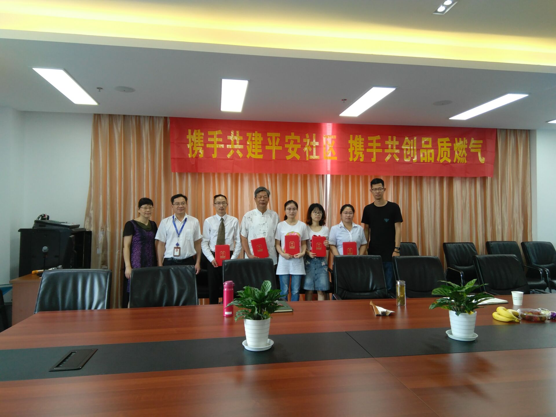 杭天公司现场颁发了“携手共建平安社区,携手共创品质燃气”牌匾和安全监督员聘书,并表示:一是希望协助公司提高入户安检率,提供小区空关户联系方式;二是希望发挥机构作用,协助公司推进燃气隐患整改;三是希望协同强化用气安全宣传,共创“平安社区”;四是希望共同提高燃气泄漏燃爆等突发事件应急处置能力,将风险和损失降至最小;五是希望及时关注高层用户违规使用煤气钢瓶等情况并督促整改,推荐住户使用天然气。 同时,将为社区居民提供如更换金属管免上门费,推广19服务厅让用户足不出户办业务等更优质、更实惠的便民服务,期待共建后进一步交流协作。