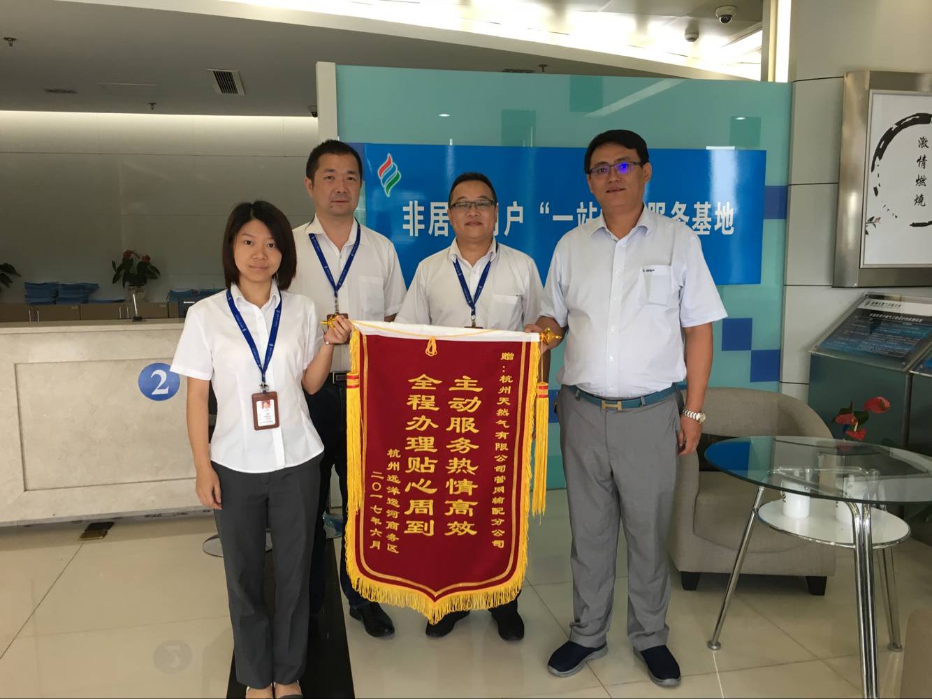6月28日,非居民用户“一站式”服务基地收到来自远洋乐堤港商业综合体相关负责人送上的绣有“主动服务热情高效,全程办理贴心周到”的锦旗,以表达对客户经理全程主动、细致、周到服务的感谢。这是非居民用户“一站式”服务基地自1月20日成立以来收到的第一面锦旗,既是对客户经理近阶段不断突破、辛勤工作的肯定,也是对服务基地深入探索流程优化、提升服务水平的激励。