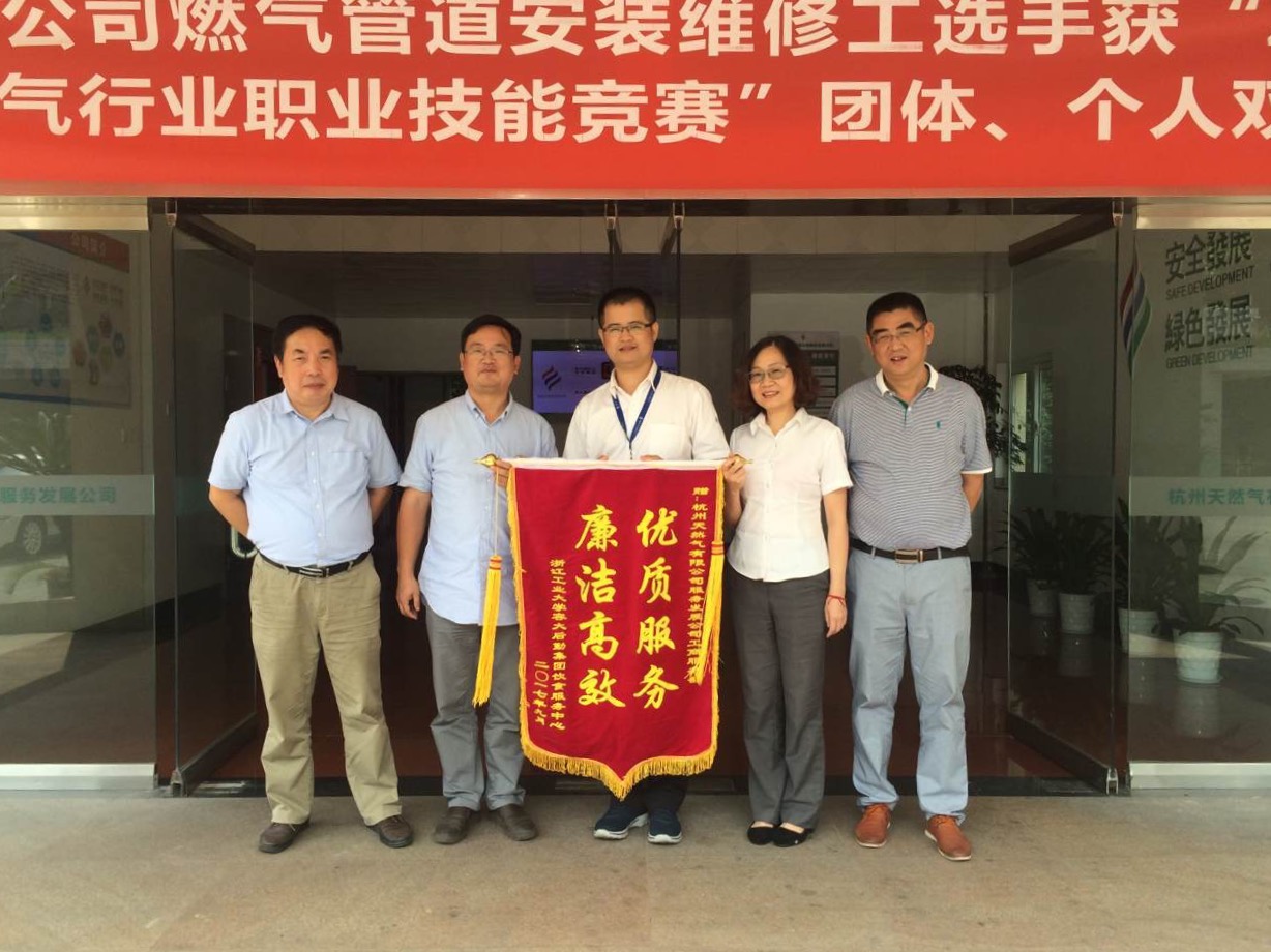 9月13日,浙江工业大学容大后勤集团冯主任专程将写有“优质服务,廉洁高效”的锦旗送到杭天服务发展公司。冯主任衷心地感谢公司对浙工大两个校区厨房改造工程的支持和帮助,赞扬拆改工程的高效有序。