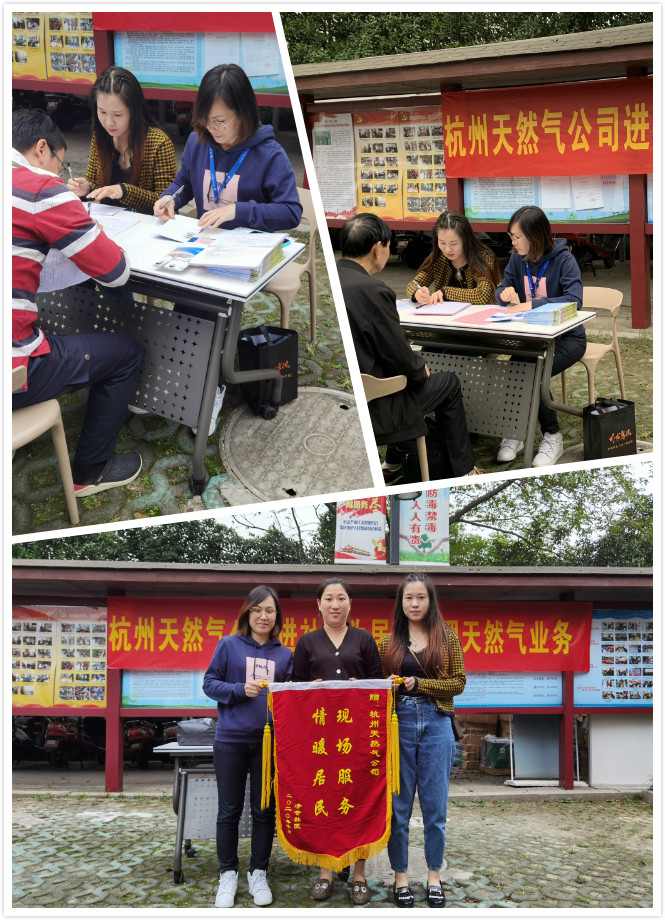 服务现场,工作有条不紊地展开,在维持秩序、疏导人群的同时,工作人员为群众答疑解难,热情地为用户现场办理燃气开通、燃气具销售等业务,积极推广了杭然优家延伸产品与服务,指导用户关注、使用19服务厅的各项功能。此次服务共计开通户内管6户,户热同开3户,办理保险6户,预约地热踏勘1户, 销售灶具9台,热水器1台。便民利民的服务受到了社区居民的一致好评与赞扬,社区主任特地赶到现场,为工作人员们送上了一面“现场服务,暖情居民”的锦旗。