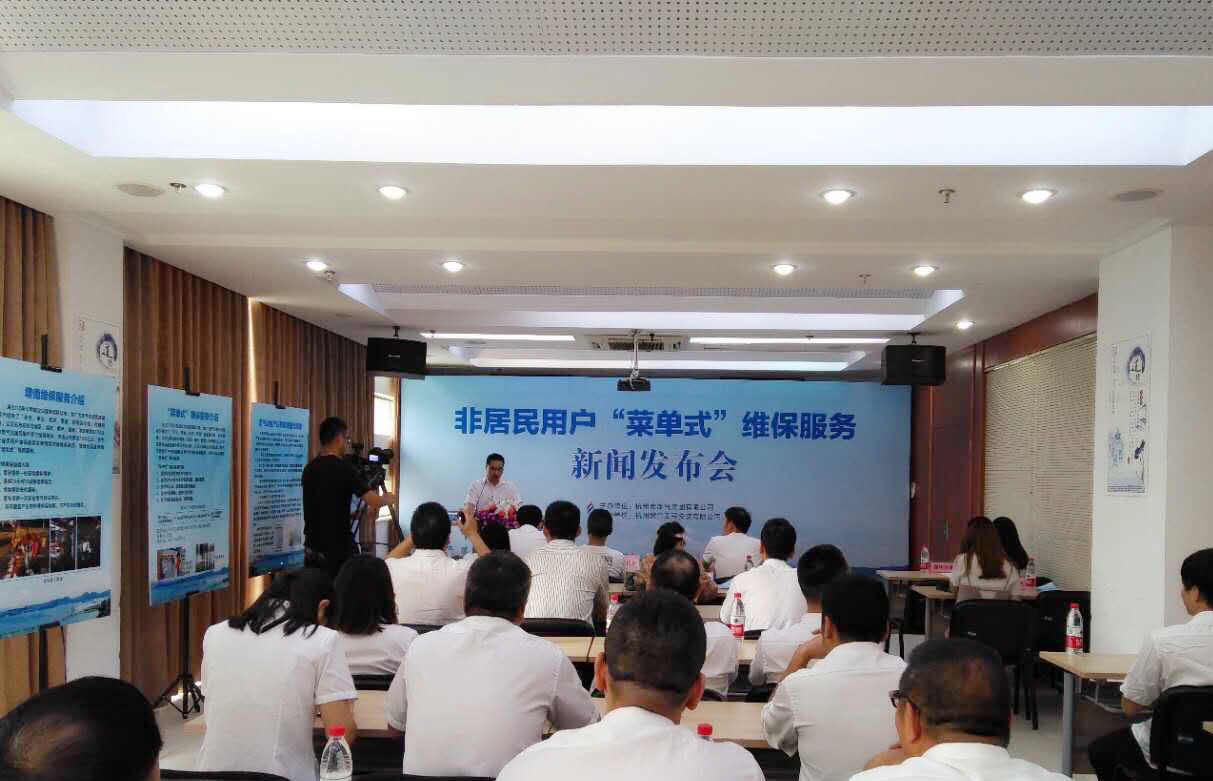 为积极践行“安全发展、创新发展、绿色发展、共享发展”理念,进一步推广杭燃工程品牌,6月27日,工程公司在海月桥基地西四楼会议室召开新闻发布会,推出燃气“非居民用户‘菜单式’维保服务”。杭州一台,杭州日报,钱江晚报,杭州网等多家媒体及省妇保,杭州市文广集团等业主代表亲临现场。