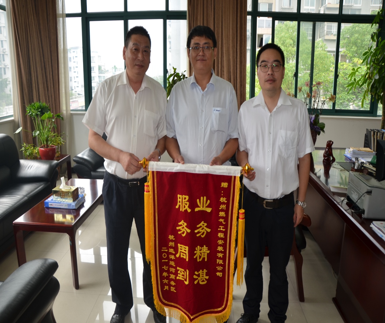 7月5日,杭州远洋运河商务区负责人专程来到工程公司,送上一面“服务周到、业务精湛”的锦旗。对公司项目部专业、细致、高效的施工服务给予了高度的赞扬。