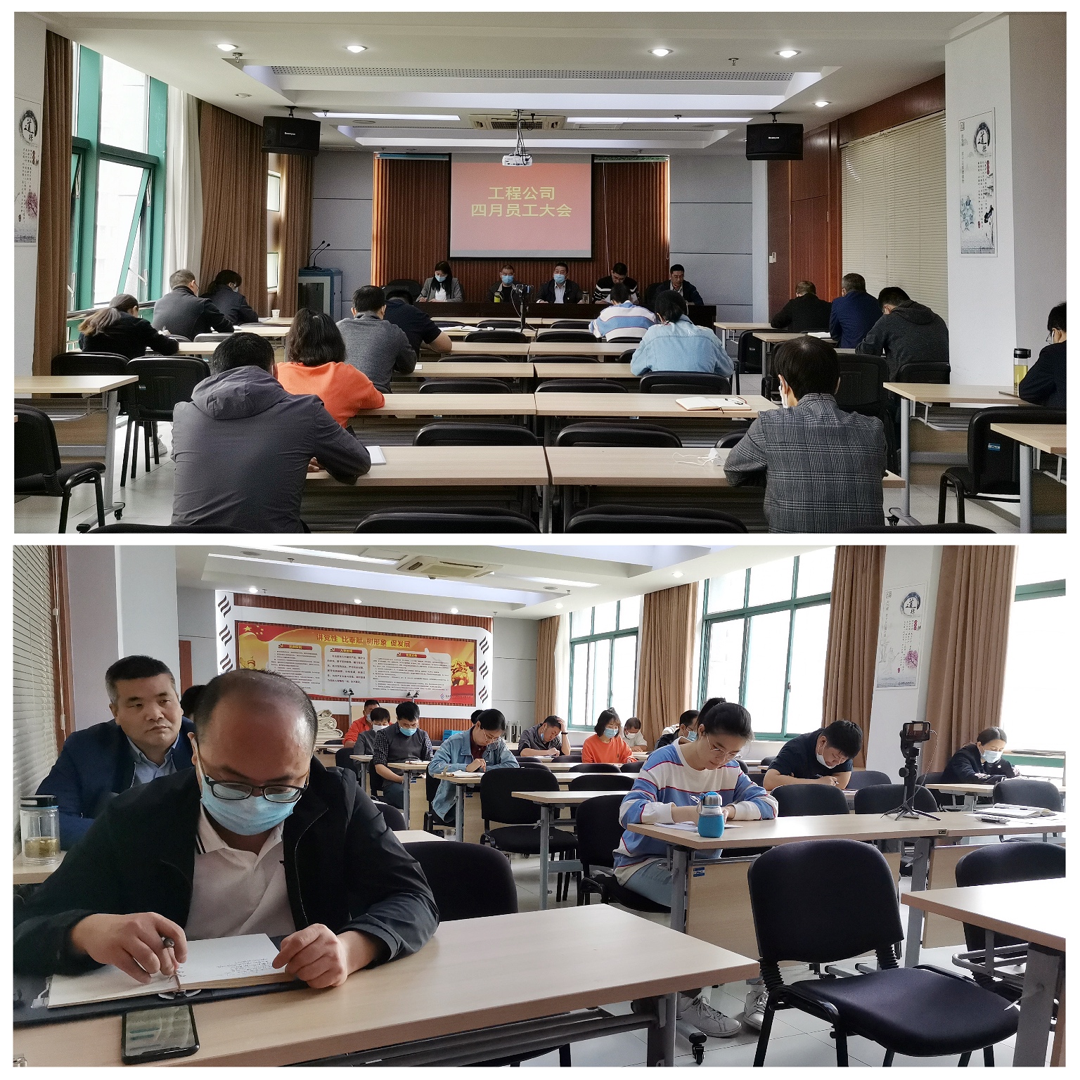 4月27日上午,工程公司于海月基地西四楼会议室召开4月份员工大会,因受疫情影响,依托“钉钉”软件视频会议功能,采用线上与线下、主会场与分会场同步在线的会议形式,公司员工及劳务班组长共计90余人参加,会议由党支部书记、总经理冯其栋主持。