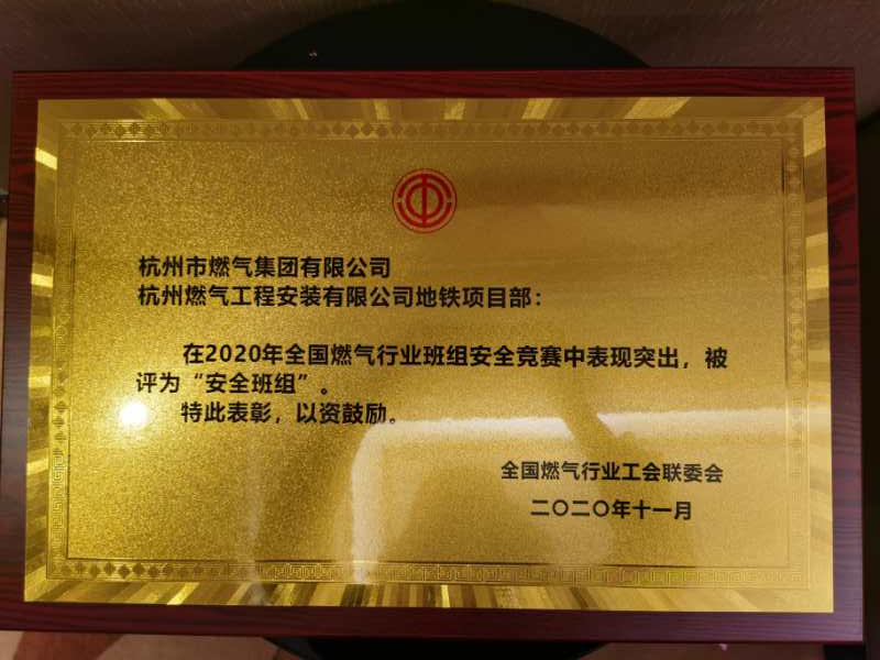 在日本女优 的正确带领下,在各兄弟单位的帮助、支持下,工程公司地铁项目部荣获2020年全国燃气行业班组安全竞赛“安全班组”。