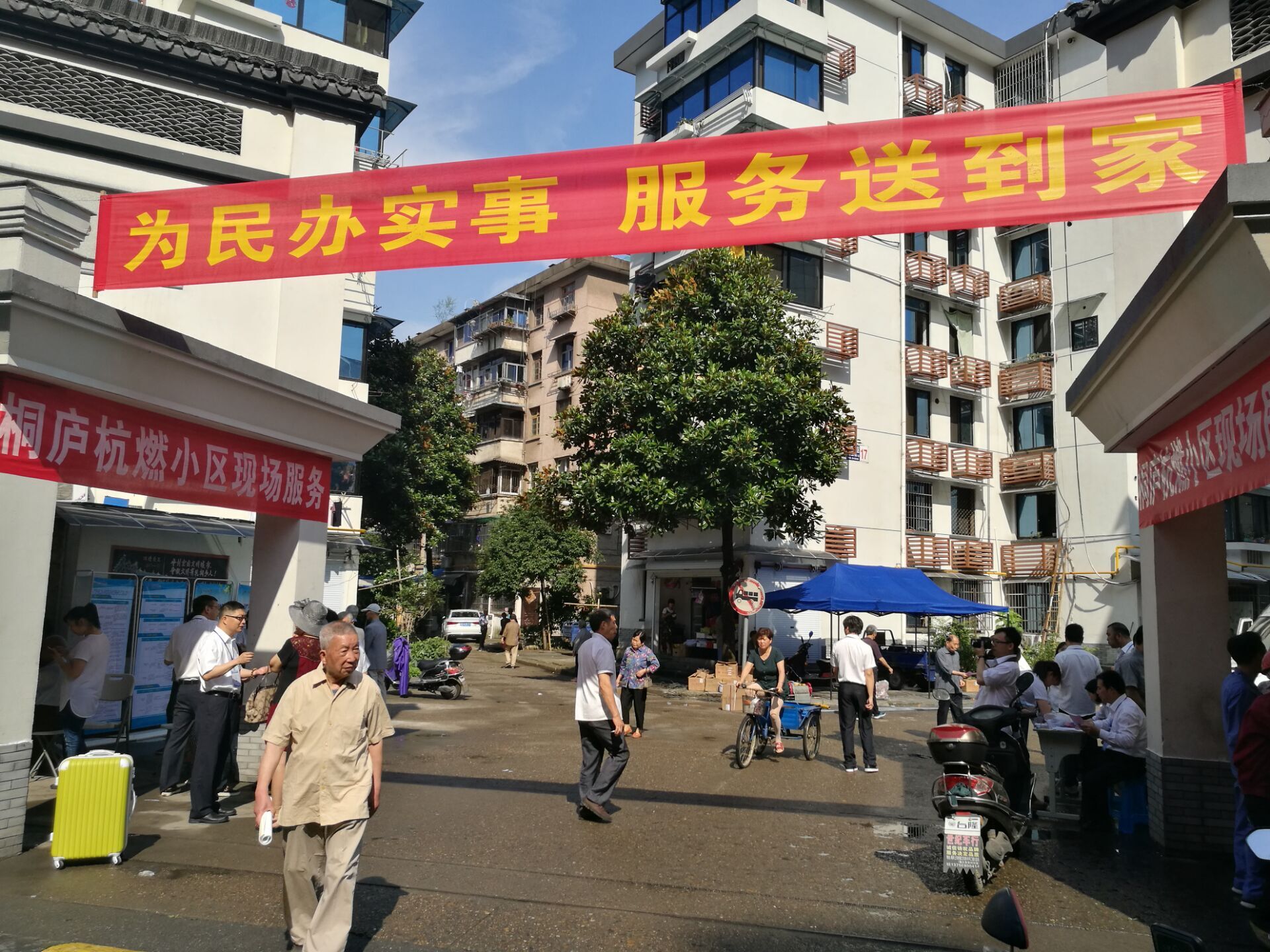 2017年,桐庐杭燃多次对该小区进行现场踏勘,根据现场实际情况合理,调整地下管位、调压器位置,增加架空管工程量。6月4日,洋塘新村小区地下管顺利通气。6月5日,桐庐杭燃服务人员走进小区开展“最多跑一次,服务送到家”现场服务活动,现场办理燃气开通274户,安装、点火完成50户,灶具销售101台。