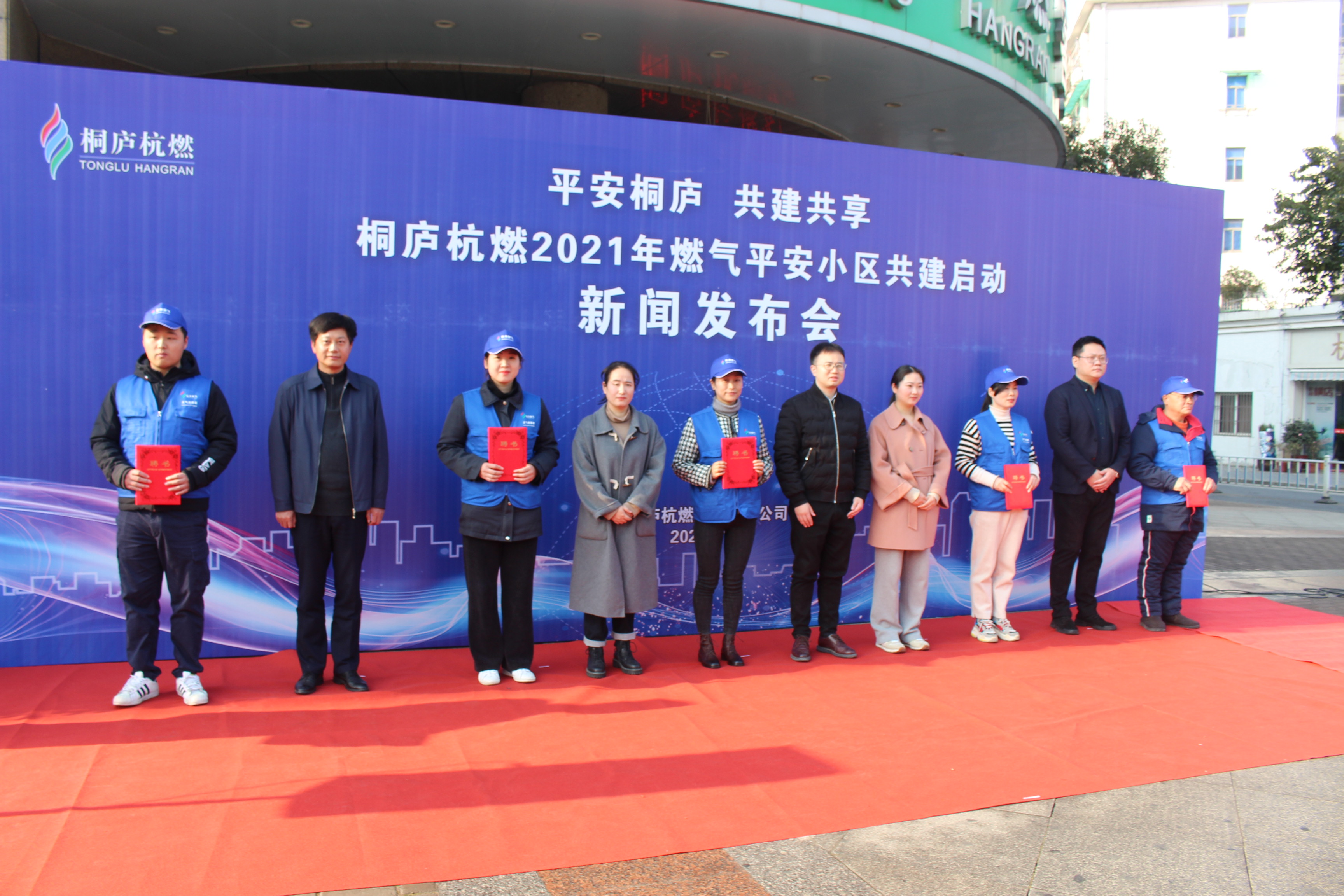 1月21日上午,桐庐杭燃组织召开“平安桐庐、共建共享”——2021年燃气平安小区共建活动启动新闻发布会。现场邀请了桐庐电视台、桐庐日报等媒体。县住建局副局长邓敏敏,城南街道副主任周华英,社会事务办副主任吴颖超,乔林社区书记朱雯静,桐庐杭燃领导班子及员工等共计50余人参加发布会。