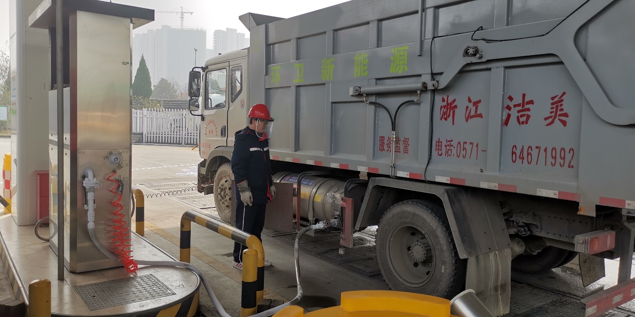 2020年底,桐庐杭燃得到桐庐县“乡镇生活垃圾中转清运车辆需改换成新能源车”这一消息,第一时间安排人员与县环境卫生管理处对接,得知垃圾清运单位为浙江洁美昌盛保洁服务有限公司,同时也是新能源车中标采购单位,但尚未确定车辆用电还是用LNG。接下去一周内,桐庐杭燃输配运行人员多次主动上门联系,从成本、环保、动力等多方面说明LNG车相对于油车与电车的优势。经过多次协谈,今年1月初,保洁公司确定使用天然气环卫车,并与LNG车辆厂家先期订购了4辆。1月29日,4辆新能源环卫车全部到桐。桐庐杭燃随即就相关内容与对方签订了供气合同。2月2日起,桐庐县首批LNG清洁能源环卫车正式开始运行。