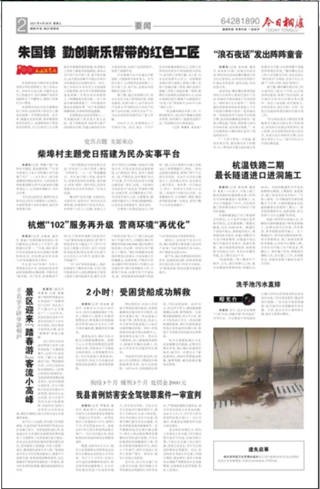 据统计,自标准下发至4月底,桐庐杭燃累计新发展工商业用户81家,“102”标准执行率100%,用户满意率达到100%。如此的工作亮点,也得到了桐庐当地媒体——《今日桐庐》及《潇洒桐庐》的报道。