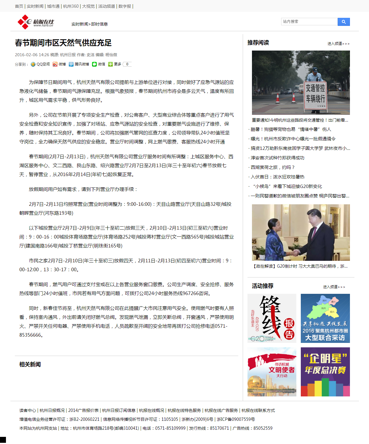 春节期间市区天然气供应充足