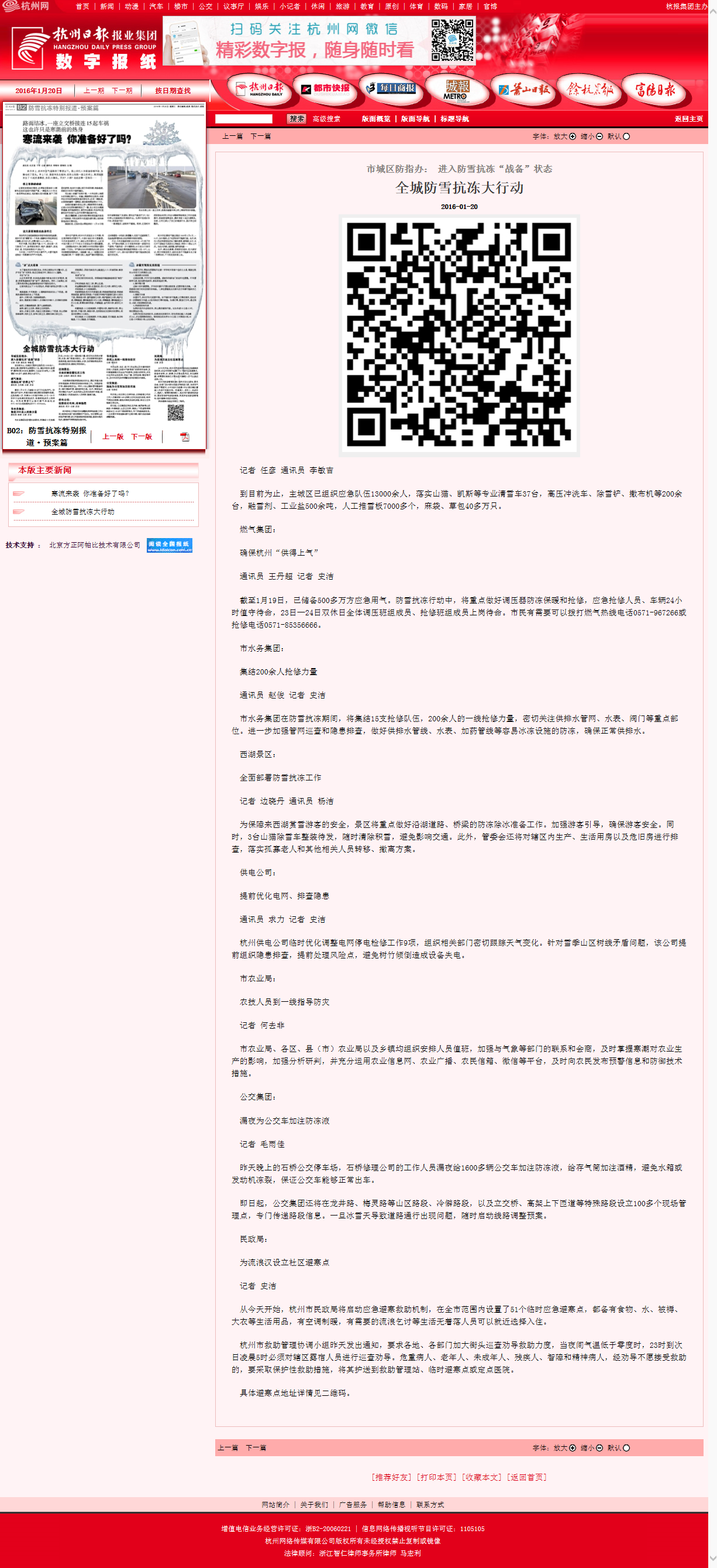 全城防雪抗冻大行动 确保杭州“供得上气”