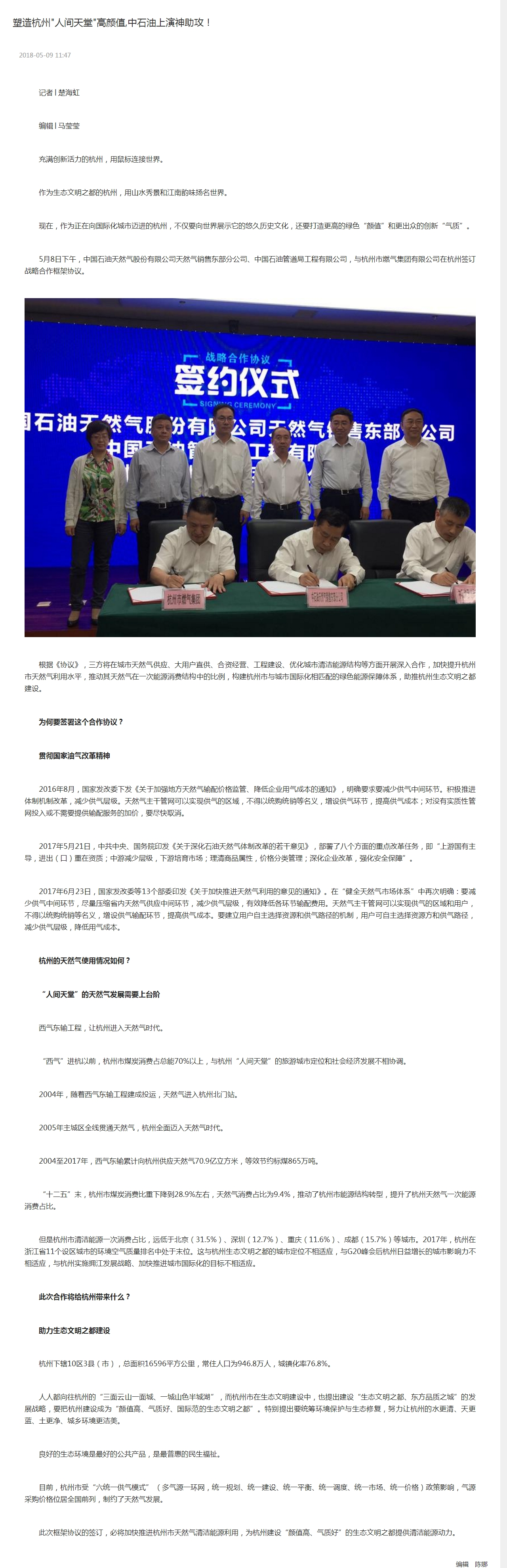 根据《协议》,三方将在城市天然气供应、大用户直供、合资经营、工程建设、优化城市清洁能源结构等方面开展深入合作,加快提升杭州市天然气利用水平,推动其天然气在一次能源消费结构中的比例,构建杭州市与城市国际化相匹配的绿色能源保障体系,助推杭州生态文明之都建设。