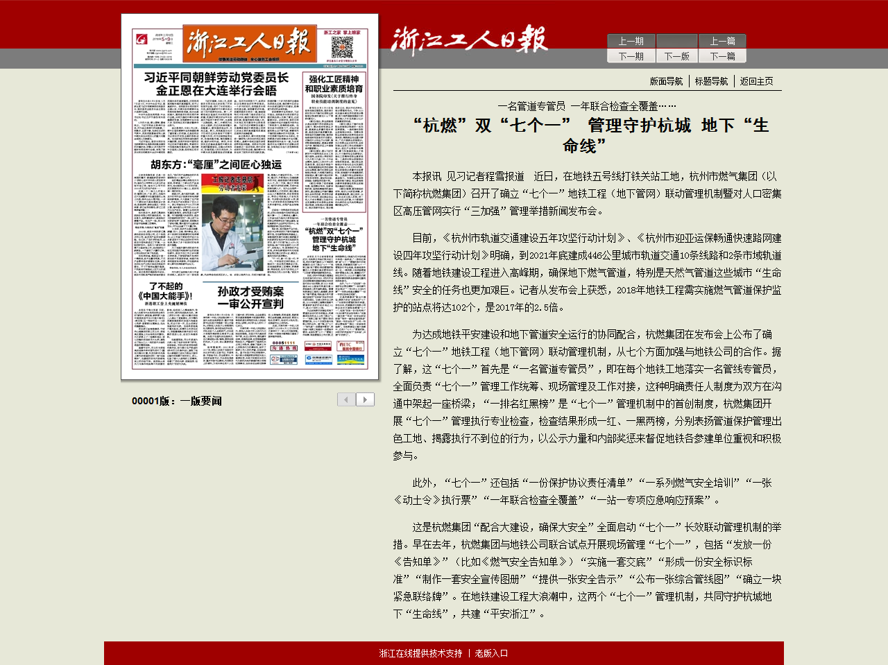 目前,《杭州市轨道交通建设五年攻坚行动计划》、《杭州市迎亚运保畅通快速路网建设四年攻坚行动计划》明确,到2021年底建成446公里城市轨道交通10条线路和2条市域轨道线。随着地铁建设工程进入高峰期,确保地下燃气管道,特别是天然气管道这些城市“生命线”安全的任务也更加艰巨。记者从发布会上获悉,2018年地铁工程需实施燃气管道保护监护的站点将达102个,是2017年的2.5倍。