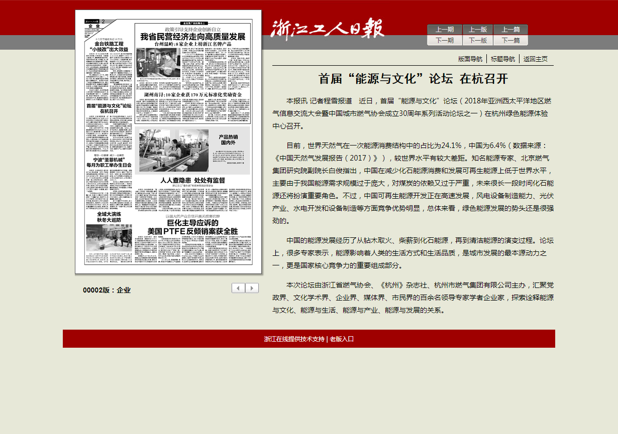 本报讯 记者程雪报道 近日,首届“能源与文化”论坛(2018年亚洲西太平洋地区燃气信息交流大会暨中国城市燃气协会成立30周年系列活动论坛之一)在杭州绿色能源体验中心召开。