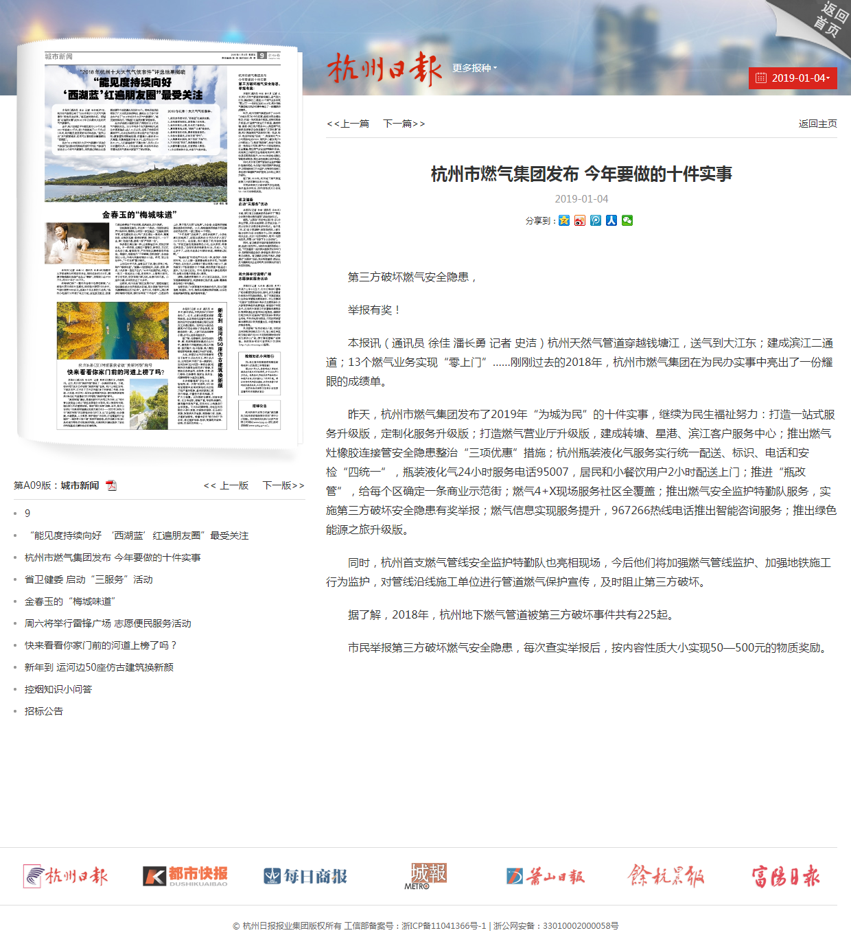 据了解,2018年,杭州地下燃气管道被第三方破坏事件共有225起。