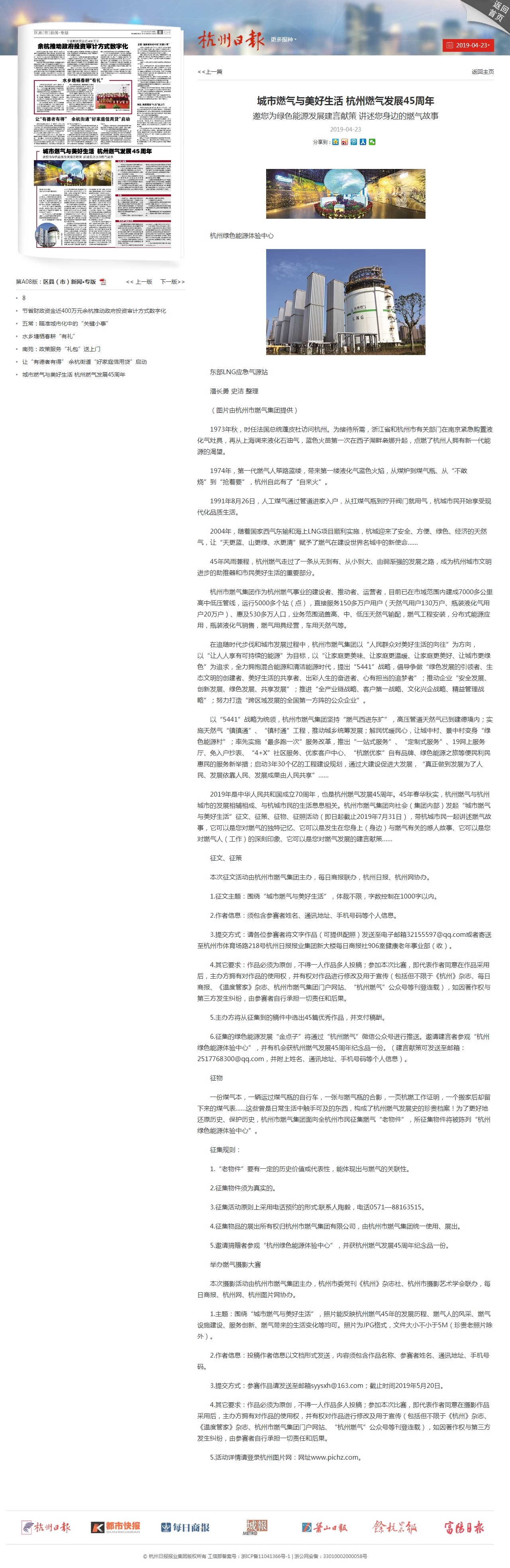 1.主题:围绕“城市燃气与美好生活”,照片能反映杭州燃气45年的发展历程、燃气人的风采、燃气设施建设、服务创新、燃气带来的生活变化等均可。照片为JPG格式,文件大小不小于5M(珍贵老照片除外)。