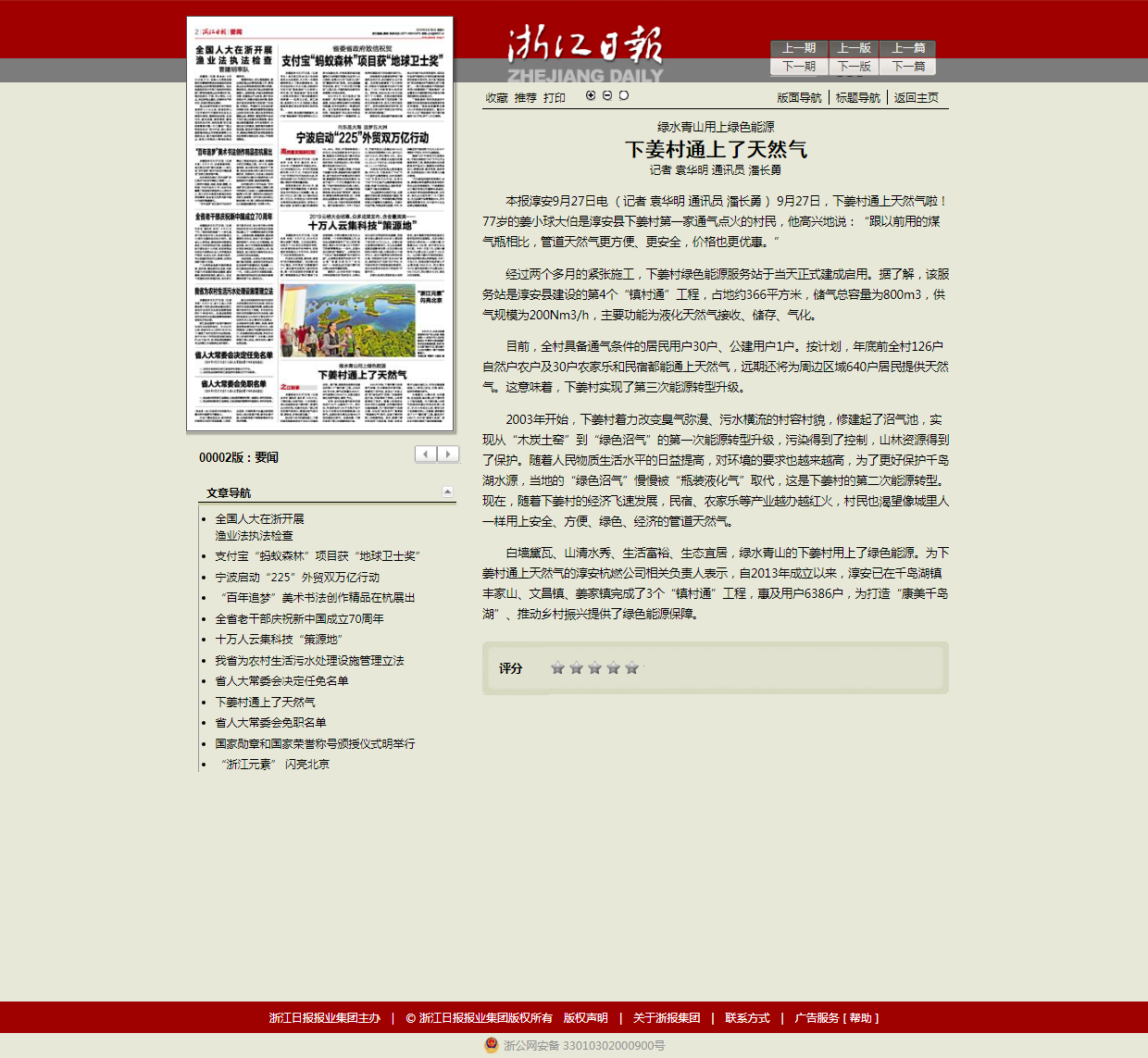 白墙黛瓦、山清水秀、生活富裕、生态宜居,绿水青山的下姜村用上了绿色能源。为下姜村通上天然气的淳安杭燃公司相关负责人表示,自2013年成立以来,淳安已在千岛湖镇丰家山、文昌镇、姜家镇完成了3个“镇村通”工程,惠及用户6386户,为打造“康美千岛湖”、推动乡村振兴提供了绿色能源保障。