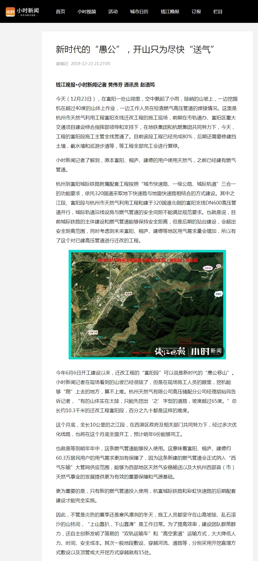 更为重要的是,只有新的燃气管道投入使用,杭富城际铁路和彩虹快速路的后期配套建设才能完全实施。