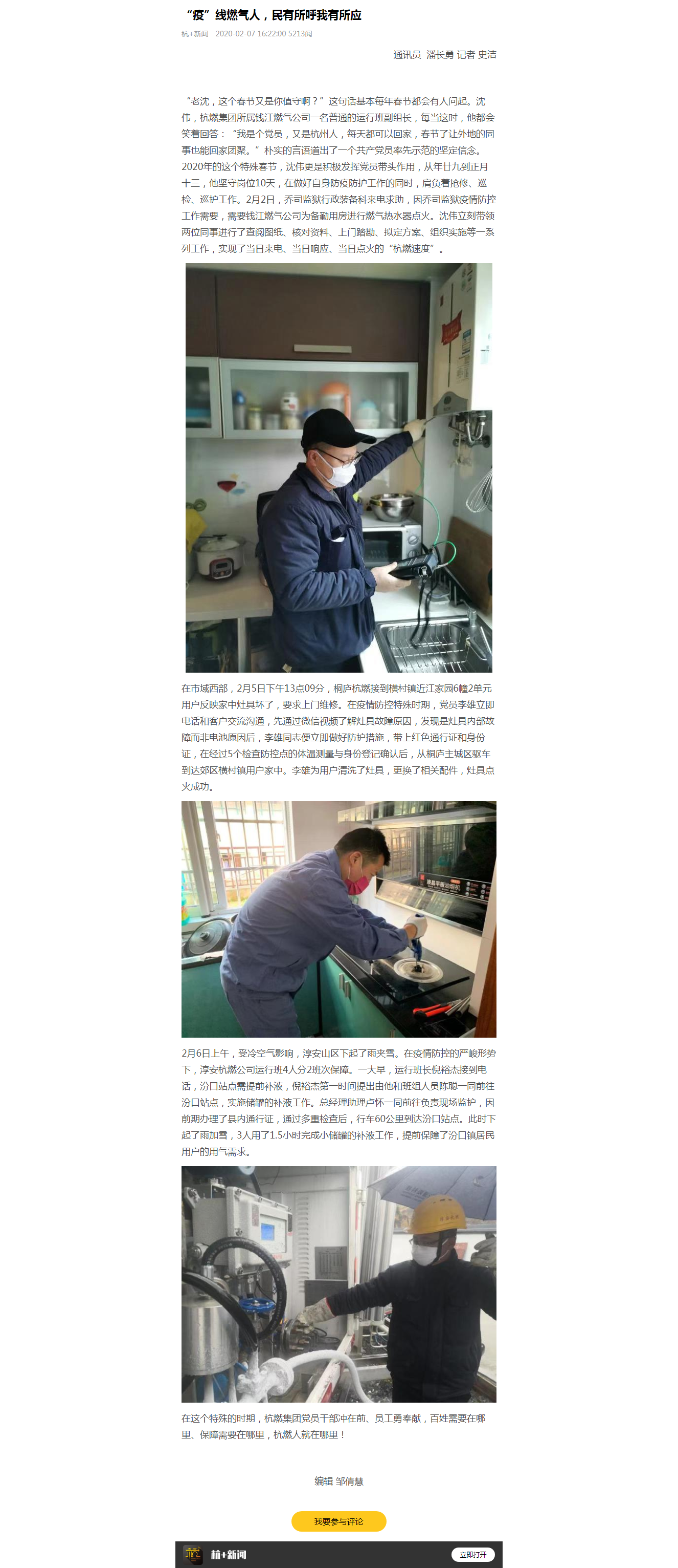 “老沈,这个春节又是你值守啊?”这句话基本每年春节都会有人问起。沈伟,日本女优 所属钱江燃气公司一名普通的运行班副组长,每当这时,他都会笑着回答:“我是个党员,又是杭州人,每天都可以回家,春节了让外地的同事也能回家团聚。”朴实的言语道出了一个共产党员率先示范的坚定信念。2020年的这个特殊春节,沈伟更是积极发挥党员带头作用,从年廿九到正月十三,他坚守岗位10天,在做好自身防疫防护工作的同时,肩负着抢修、巡检、巡护工作。2月2日,乔司监狱行政装备科来电求助,因乔司监狱疫情防控工作需要,需要钱江燃气公司为备勤用房进行燃气热水器点火。沈伟立刻带领两位同事进行了查阅图纸、核对资料、上门踏勘、拟定方案、组织实施等一系列工作,实现了当日来电、当日响应、当日点火的“杭燃速度”。