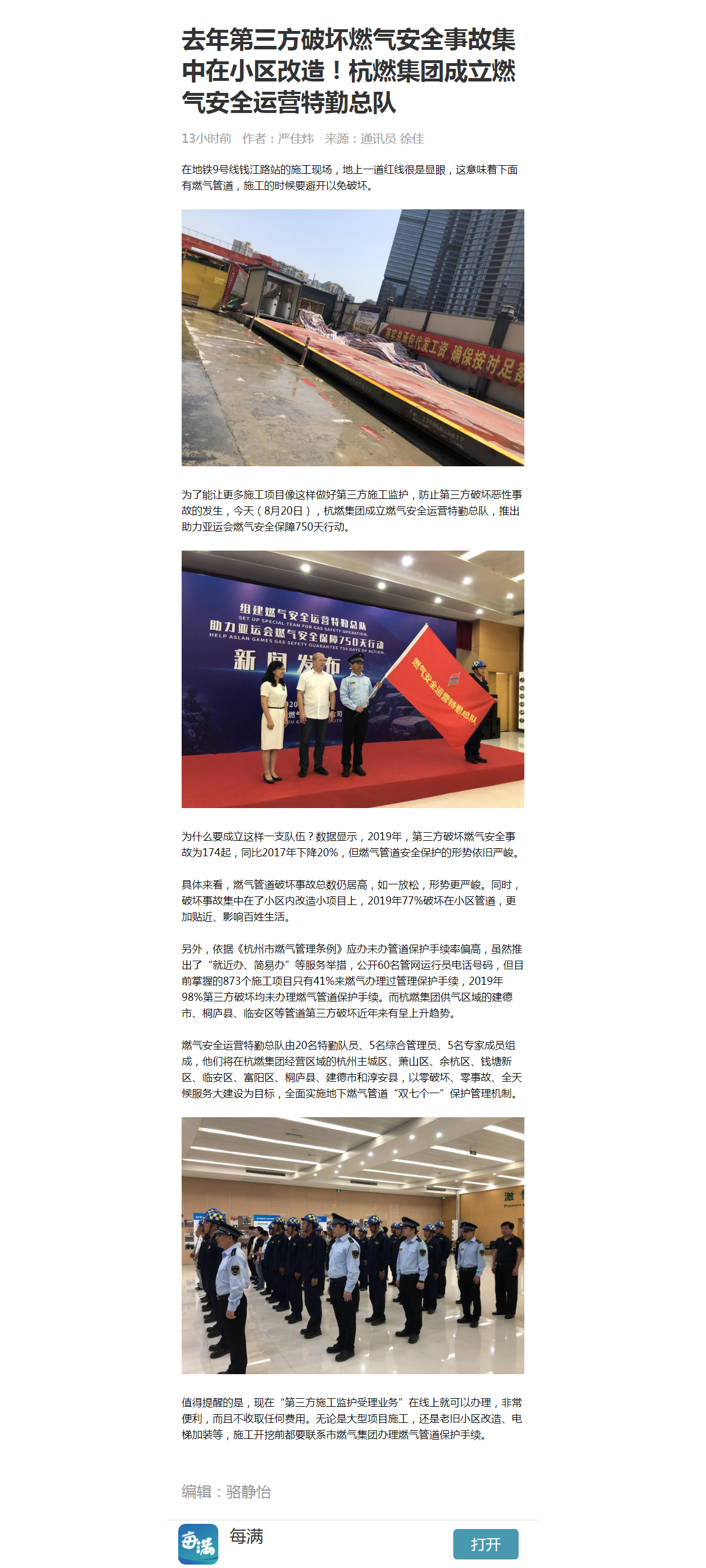 为了能让更多施工项目像这样做好第三方施工监护,防止第三方破坏恶性事故的发生,今天(8月20日),日本女优 成立燃气安全运营特勤总队,推出助力亚运会燃气安全保障750天行动。