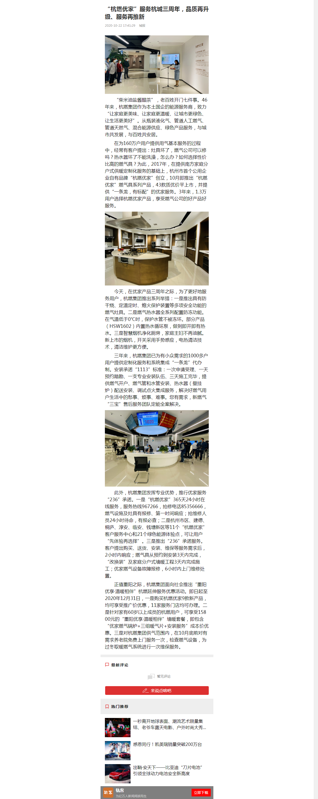 在为160万户用户提供用气基本服务的过程中,经常有客户提出:灶具坏了,燃气公司可以修吗?热水器坏了不能洗澡,怎么办?如何选择性价比高的燃气具?为此,2017年,在提供南方家庭分户式供暖定制化服务的基础上,杭州市首个公用企业自有品牌“杭燃优家”创立,10月即推出“杭燃优家”燃气具系列产品,43款质优价平上市,并提供“一条龙,有标配”的优家服务。3年来,1.3万用户选择杭燃优家产品,享受燃气公司的好产品好服务。