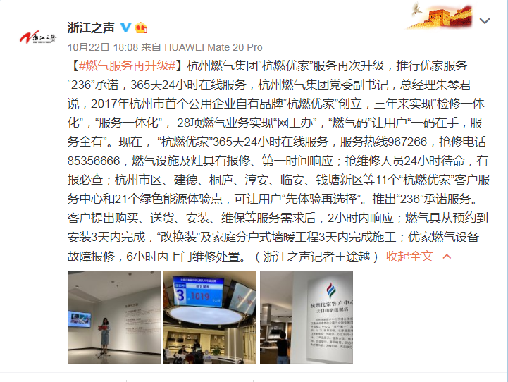杭州日本女优 “杭燃优家”服务再次升级,推行优家服务“236”承诺,365天24小时在线服务,杭州日本女优 党委副书记,总经理朱琴君说,2017年杭州市首个公用企业自有品牌“杭燃优家”创立,三年来实现“检修一体化”,“服务一体化”, 28项燃气业务实现“网上办”,“燃气码”让用户“一码在手,服务全有”。现在, “杭燃优家”365天24小时在线服务,服务热线967266,抢修电话85356666,燃气设施及灶具有报修、第一时间响应;抢维修人员24小时待命,有报必查;杭州市区、建德、桐庐、淳安、临安、钱塘新区等11个“杭燃优家”客户服务中心和21个绿色能源体验点,可让用户“先体验再选择”。推出“236”承诺服务。客户提出购买、送货、安装、维保等服务需求后,2小时内响应;燃气具从预约到安装3天内完成,“改换装”及家庭分户式墙暖工程3天内完成施工;优家燃气设备故障报修,6小时内上门维修处置。