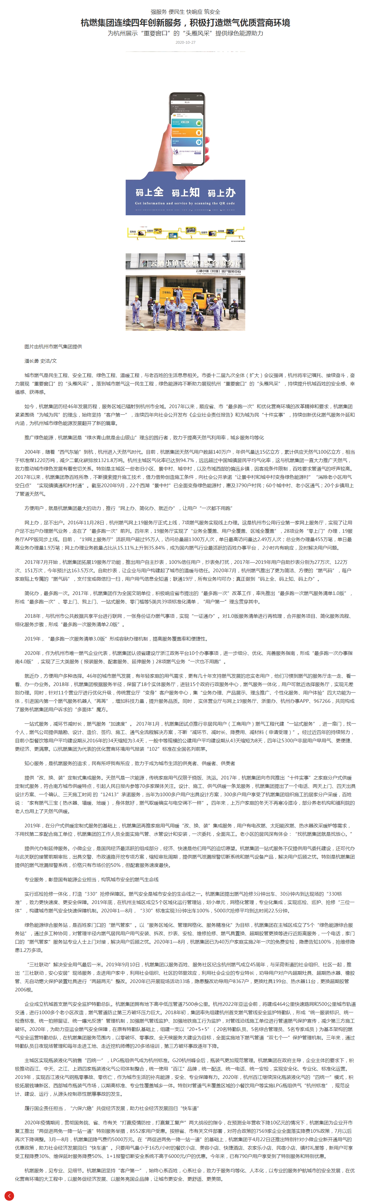 2020年,作为杭州市唯一燃气企业代表,日本女优 认领省建设厅浙江政务平台10个办事事项,进一步细分、优化、完善服务指南,形成“最多跑一次办事指南4.0版”,实现了三大类服务(报装服务、配套服务、延伸服务)28项燃气业务“一次也不用跑”。