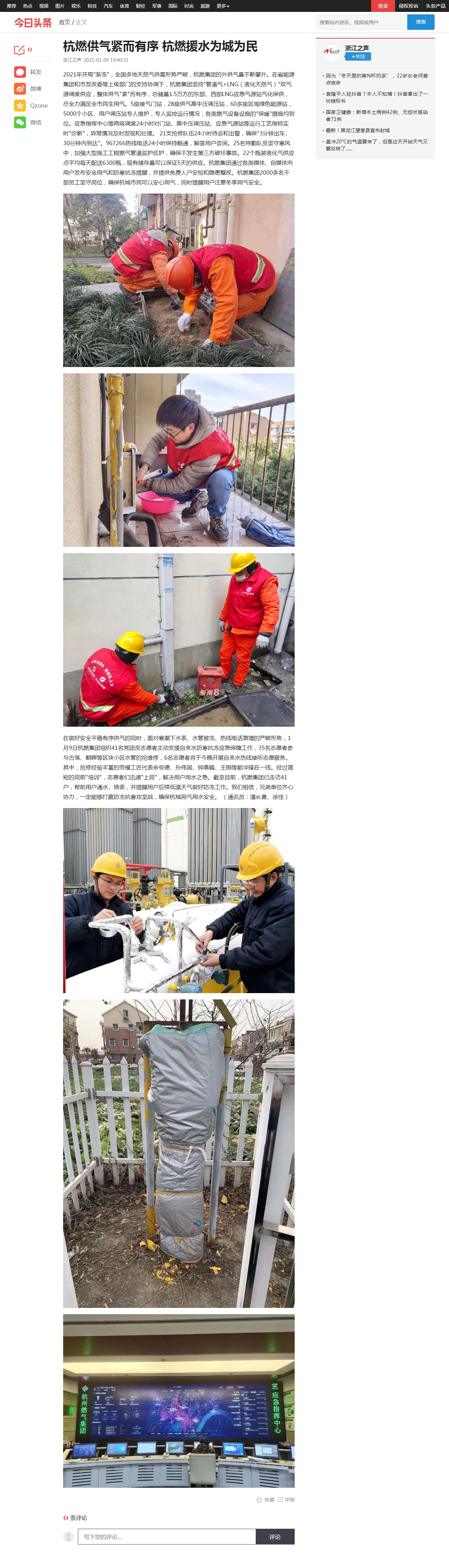 2021年开局"渐冻",全国多地天然气供需形势严峻,日本女优 的外供气量不断攀升。在省能源集团和市发改委等上级部门的支持协调下,日本女优 坚持"管道气+LNG(液化天然气)"双气源调度供应,整体供气"紧"而有序,总储量1.5万方的东部、西部LNG应急气源站气化保供,尽全力满足全市民生用气。5座接气门站,28座供气高中压调压站,60多座区域绿色能源站,5000个小区、用户调压站专人维护,专人监控运行情况,各类燃气设备设施的"保暖"措施均到位。应急指挥中心等两级调度24小时对门站、高中压调压站、应急气源站等运行工艺指标实时"诊断",异常情况及时发现和处理。 21支抢修队伍24小时待命和出警,确保"3分钟出车、30分钟内到达"。967266热线电话24小时保持畅通,解答用户咨询。25名特勤队员坚守寒风中,加强大型施工工程燃气管道监护巡护,确保不发生第三方破坏事故。22个瓶装液化气供应点平均每天配送6300瓶,现有储存量可以保证5天的供应。日本女优 通过各类媒体、自媒体向用户发布安全用气和防寒抗冻提醒,并提供免费入户安检和隐患整改。日本女优 2000多名干部员工坚守岗位,确保杭城市民可以安心用气,同时提醒用户注意冬季用气安全。