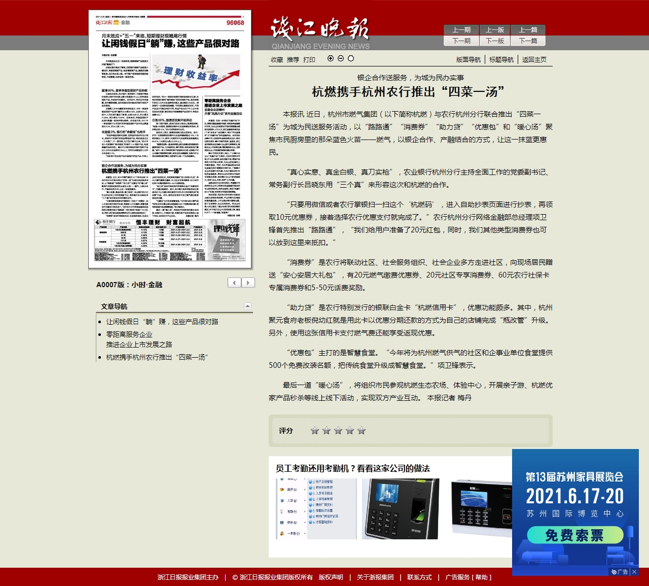 “助力贷”是农行特别发行的银联白金卡“杭燃信用卡”,优惠功能颇多。其中,杭州聚元食府老板倪幼红就是用此卡以优惠分期还款的方式为自己的店铺完成“瓶改管”升级。另外,使用这张信用卡支付燃气费还能享受返现优惠。