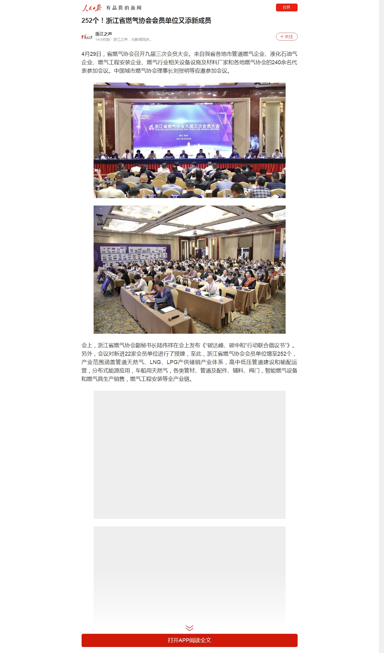 会上,浙江省燃气协会副秘书长陆伟祥在会上发布《“碳达峰、碳中和”行动联合倡议书”》。另外,会议对新进22家会员单位进行了授牌,至此,浙江省燃气协会会员单位增至252个,产业范围涵盖管道天然气、LNG、LPG产供储销产业体系,高中低压管道建设和输配运营,分布式能源应用,车船用天然气,各类管材、管道及配件、辅料、阀门,智能燃气设备和燃气具生产销售,燃气工程安装等全产业链。