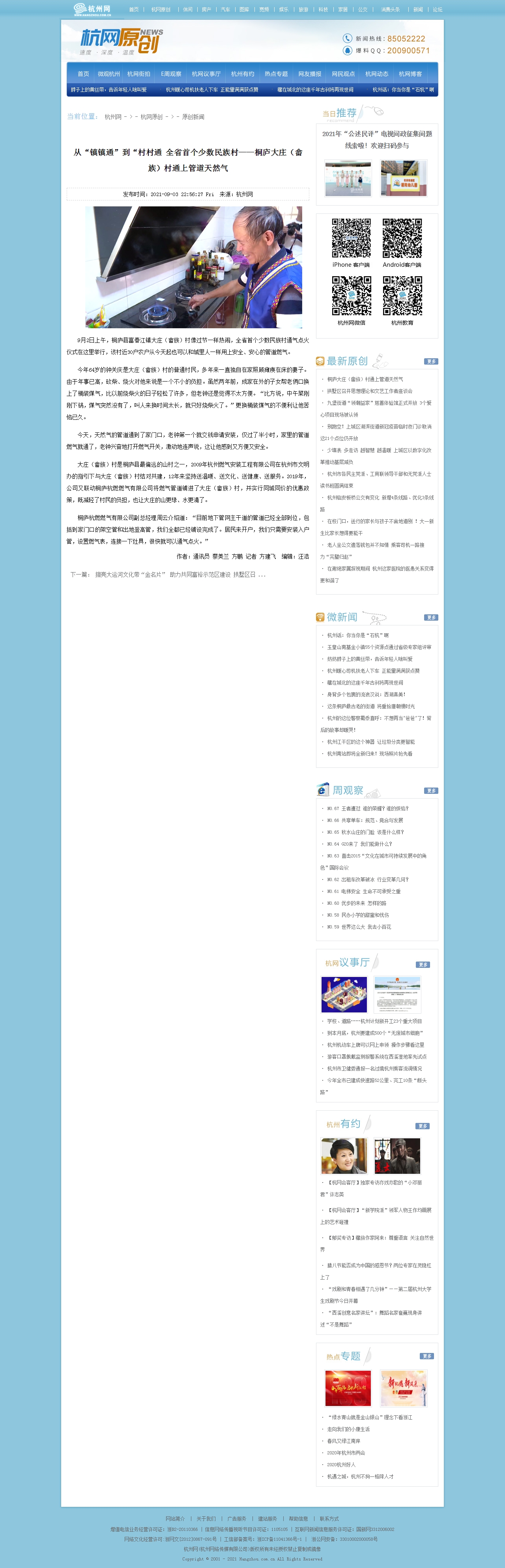 9月2日上午,桐庐县富春江镇大庄(畲族)村像过节一样热闹,全省首个少数民族村通气点火仪式在这里举行,该村近30户农户从今天起也可以和城里人一样用上安全、安心的管道燃气。