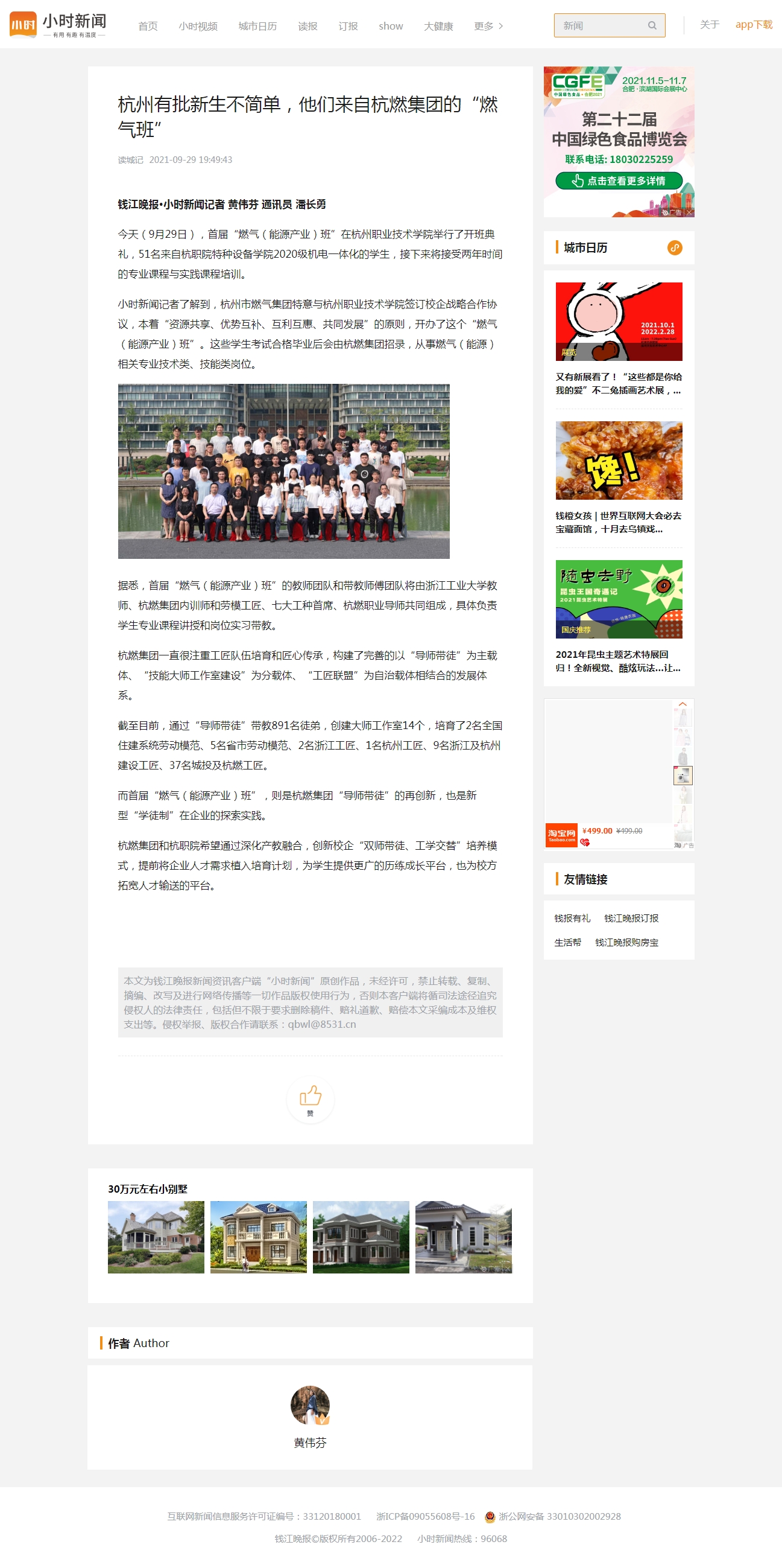 今天(9月29日),首届“燃气(能源产业)班”在杭州职业技术学院举行了开班典礼,51名来自杭职院特种设备学院2020级机电一体化的学生,接下来将接受两年时间的专业课程与实践课程培训。