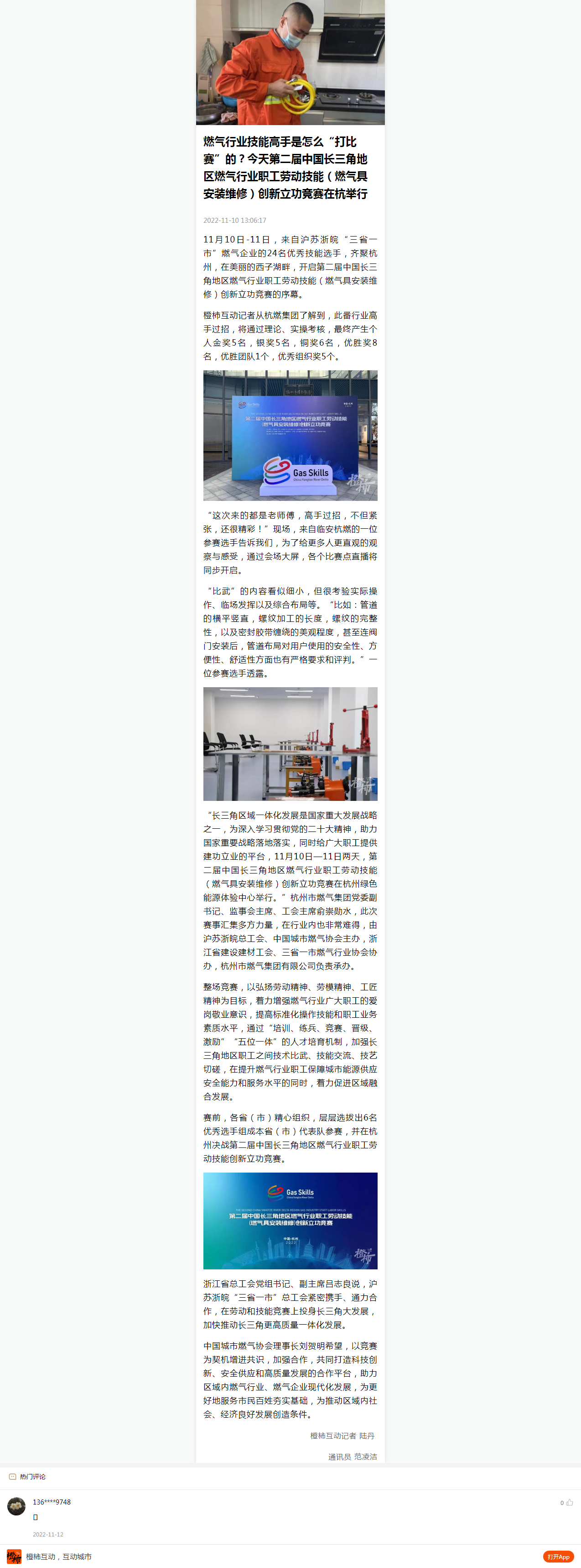 “长三角区域一体化发展是国家重大发展战略之一,为深入学习贯彻党的二十大精神,助力国家重要战略落地落实,同时给广大职工提供建功立业的平台,11月10日—11日两天,第二届中国长三角地区燃气行业职工劳动技能(燃气具安装维修)创新立功竞赛在杭州绿色能源体验中心举行。”日本女优 党委副书记、监事会主席、工会主席俞崇勋水,此次赛事汇集多方力量,在行业内也非常难得,由沪苏浙皖总工会、中国城市燃气协会主办,浙江省建设建材工会、三省一市燃气行业协会协办,日本女优 有限公司负责承办。