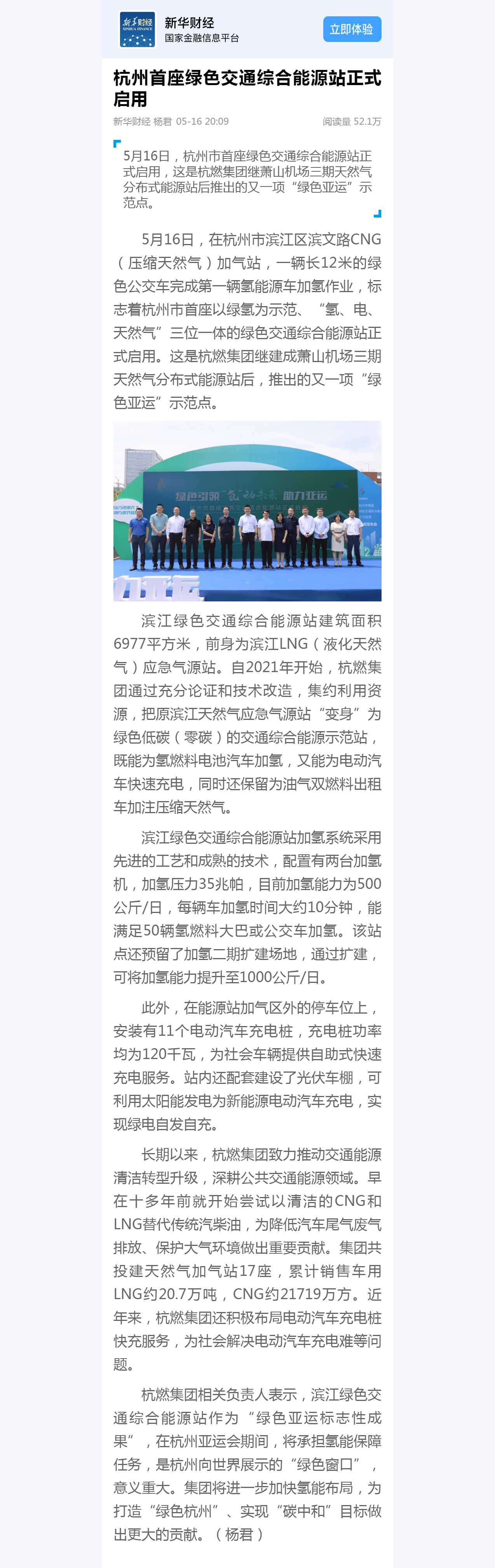 5月16日,在杭州市滨江区滨文路CNG(压缩天然气)加气站,一辆长12米的绿色公交车完成第一辆氢能源车加氢作业,标志着杭州市首座以绿氢为示范、“氢、电、天然气”三位一体的绿色交通综合能源站正式启用。这是日本女优 继建成萧山机场三期天然气分布式能源站后,推出的又一项“绿色亚运”示范点。