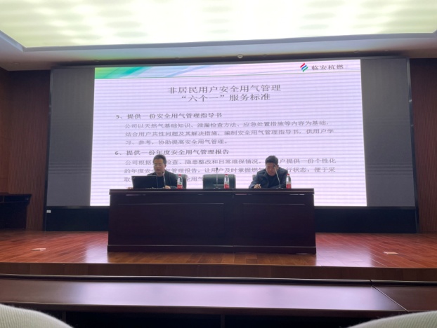 临安杭燃对非居民用户用气过程中常见安全用气隐患进行分析。同时邀请了燃气报警设备厂家和施工单位,对燃气报警探测系统的构成及工作原理、燃气设施维保服务等内容进行培训宣贯。