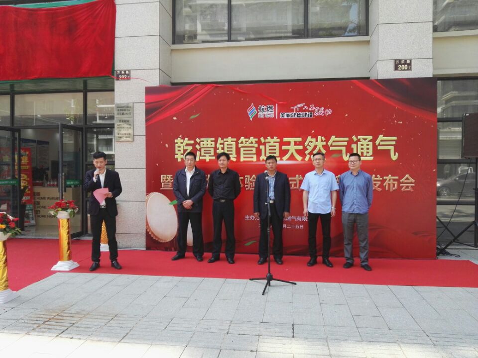 4月25日,建德杭燃燃气有限公司乾潭镇天然气举行通气点火仪式,正式投入运营,宣告着乾潭镇进入天然气时代。发布会邀请了乾潭镇党委书记王百金、建德市住建局(园林局副局长)汪炅、园林局燃气科科长季文良、建德杭燃燃气有限公司董事长俞红伟先生、杭州燃气工程安装有限公司董事长陆汉卿等代表,建德电视台、今日建德等新闻媒体亲临活动现场,发布会由建德杭燃总经理徐小冬主持。