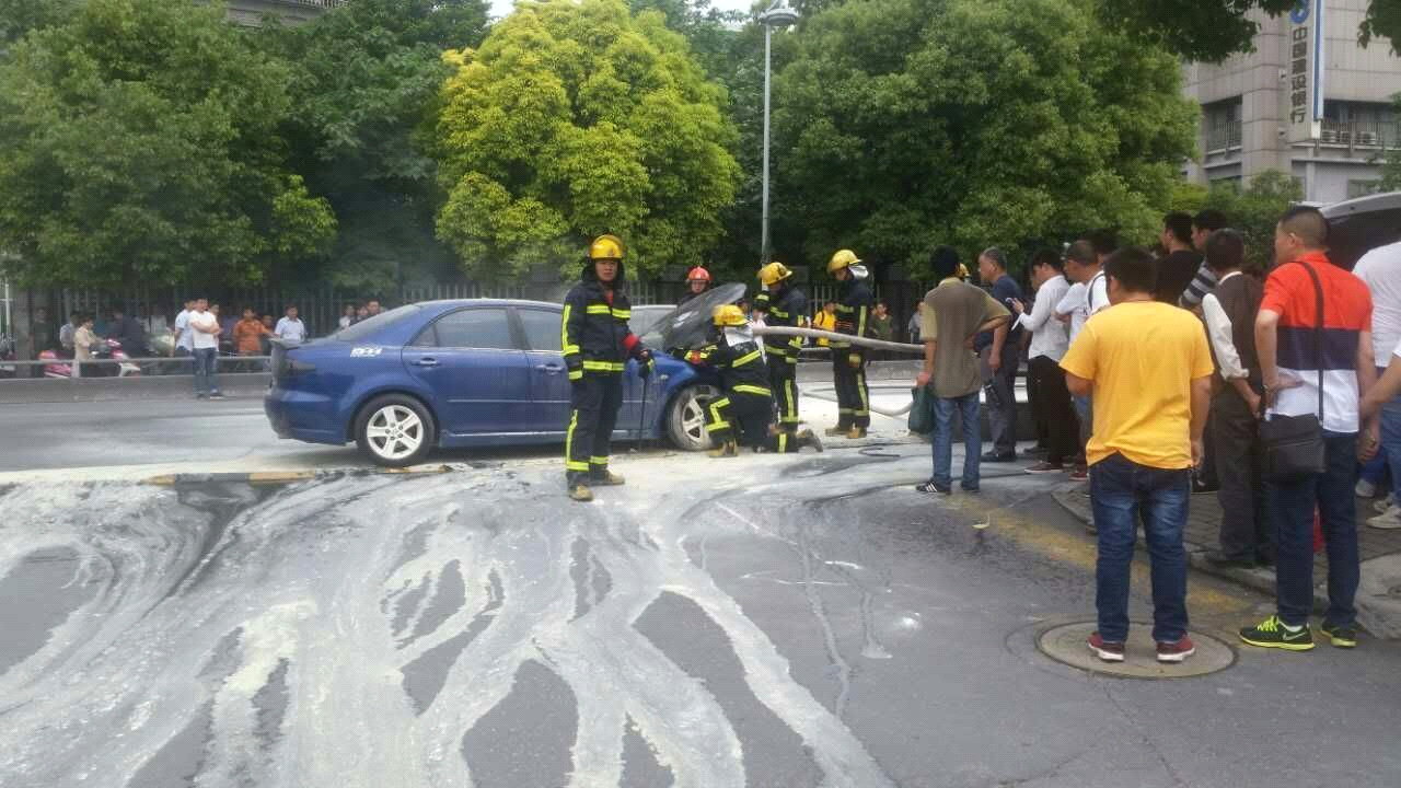 2016年5月6日上午10点35分左右,杭州中石化杭然能源有限公司清泰门油气合建站通道口外,一辆蓝色马自达轿车前部突然起火。当班员工发现后,立即启动应急预案。站长第一时间带领员工使用站内灭火器进行灭火,使得火势无法蔓延,为消防人员赶赴现场救火争取了宝贵的时间。同时,一名员工立即关闭急停,切断动力电源,暂停一切加油加气操作,另一立即拨打119报警电话。现场其他员工及时疏散站内车辆和人员,现场做好警戒工作。