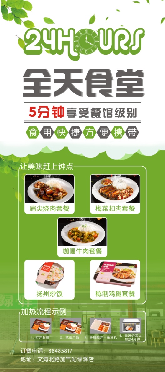 “24小时食堂”只需用时5分钟就可以让顾客享受餐馆级别的待遇,优点就是食用快捷还携带方便,目前有扁尖烧肉套餐、梅菜扣肉套餐、咖喱牛肉套餐、红烧鸡腿套餐还有扬州炒饭等多个掏槽。解决了司机师傅到饭点找不到吃饭的地方或者只能吃泡面、面包等来填饱肚子的难题,这一项服务的跟进大大增加杭城司机师傅的幸福感,归属感。吃饱饭,加油干,把驾驶员当做“家人”,每一个驾驶员背后就是一个人群,以一带十,以十带百,他们将是我们最好的宣传者。