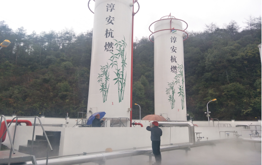 为确保丰家山气化站储罐安全置换,经过近一个月约10吨氮气的模拟运行,2月21日,丰家山气化站顺利置换。淳安公司服务发展部根据批准的《丰家山LNG气源站投产方案》,早上7点,公司相关人员就到现场对设备做最后一次检查,对相关阀门开关确认后,报集团应急中心置换开始,工作人员对储罐剩余液氮进行排放,经过约2小时排放后,储罐液位降至零,储罐压力下降至0.1MPa以下。9点30分LNG槽车进入场站进行增压后卸液,公司领导与工作人员冒雨作业,经过约5小时,成功完成两个储罐的置换工作,共计卸液19.5吨。同时,对外管网进行置换,置换合格后供气,截止发稿已对外供气100余方,丰家山场站系统目前运行正常。按照方案工作人员24小时驻守场站,保障丰家山LNG气源站试运行平稳。